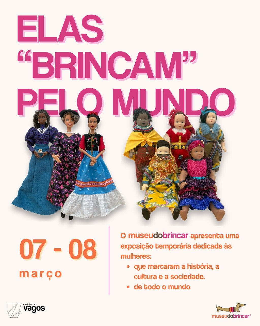 A mostra reúne um conjunto de figuras representativas de diversas tradições e regiões do mundo, destacando a diversidade cultural e a importância das mulheres nos mais variados contextos. Através do universo do brincar, o museu propõe um olhar lúdico e educativo sobre referências femininas marcantes, convidando o público a refletir sobre a herança que estas figuras deixam nas comunidades.