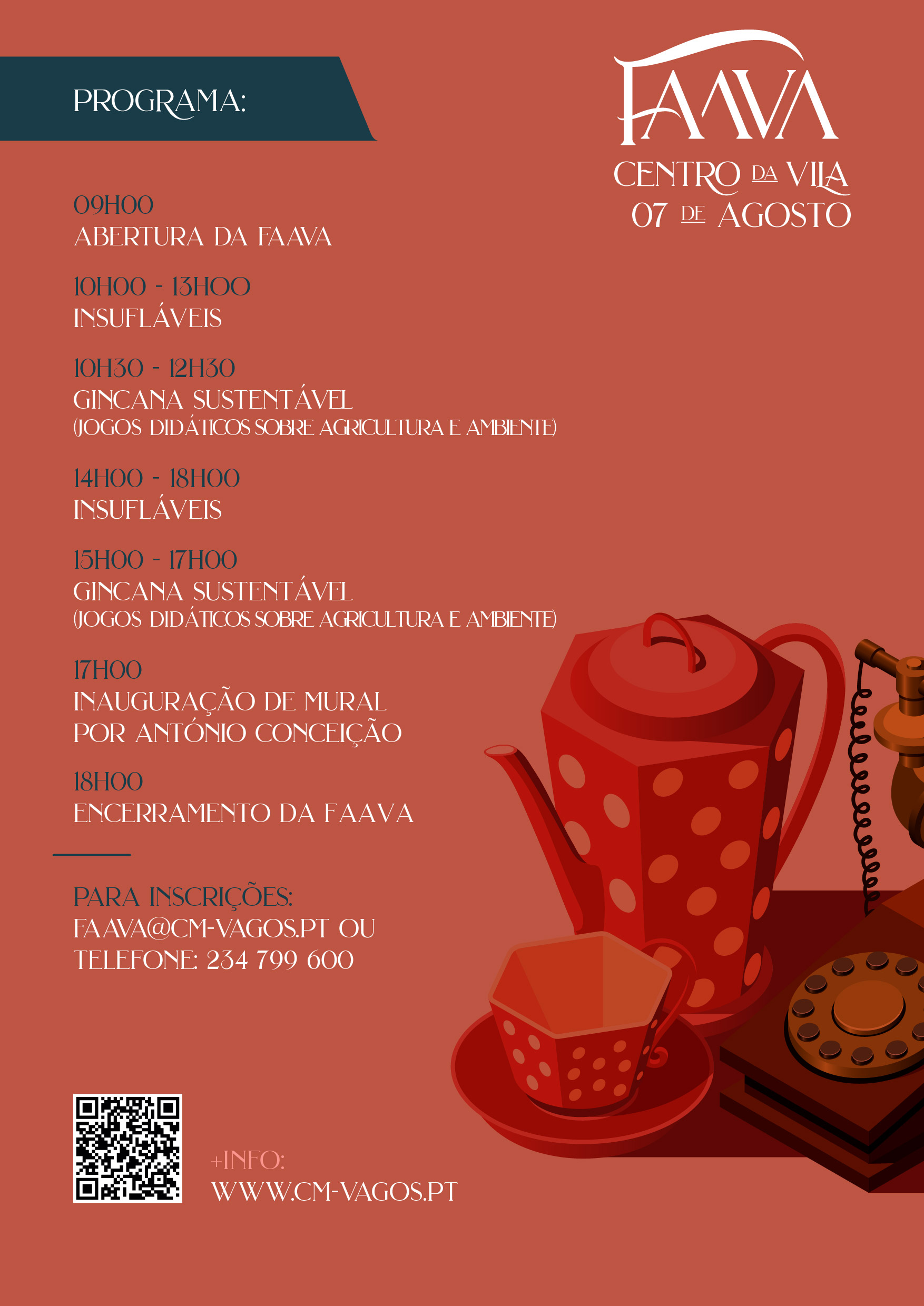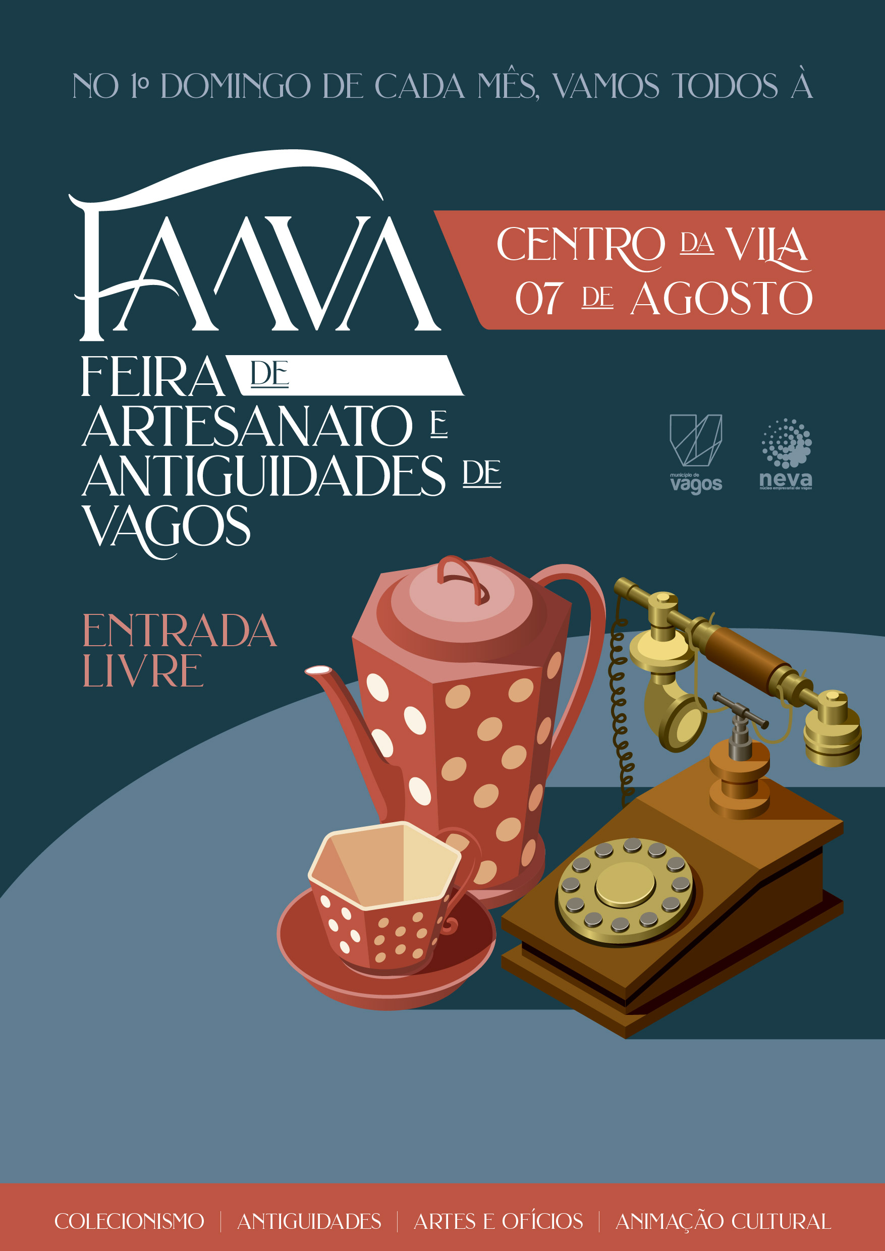 O Município de Vagos e o Núcleo Empresarial de Vagos (NEVA) irão realizar, no próximo dia 7 de agosto de 2022, entre as 09h00 e as 18h00, na Pérgola de Vagos (Centro da Vila de Vagos), a 5ª edição da FaaVa – Feira de Artesanato e Antiguidades de Vagos.