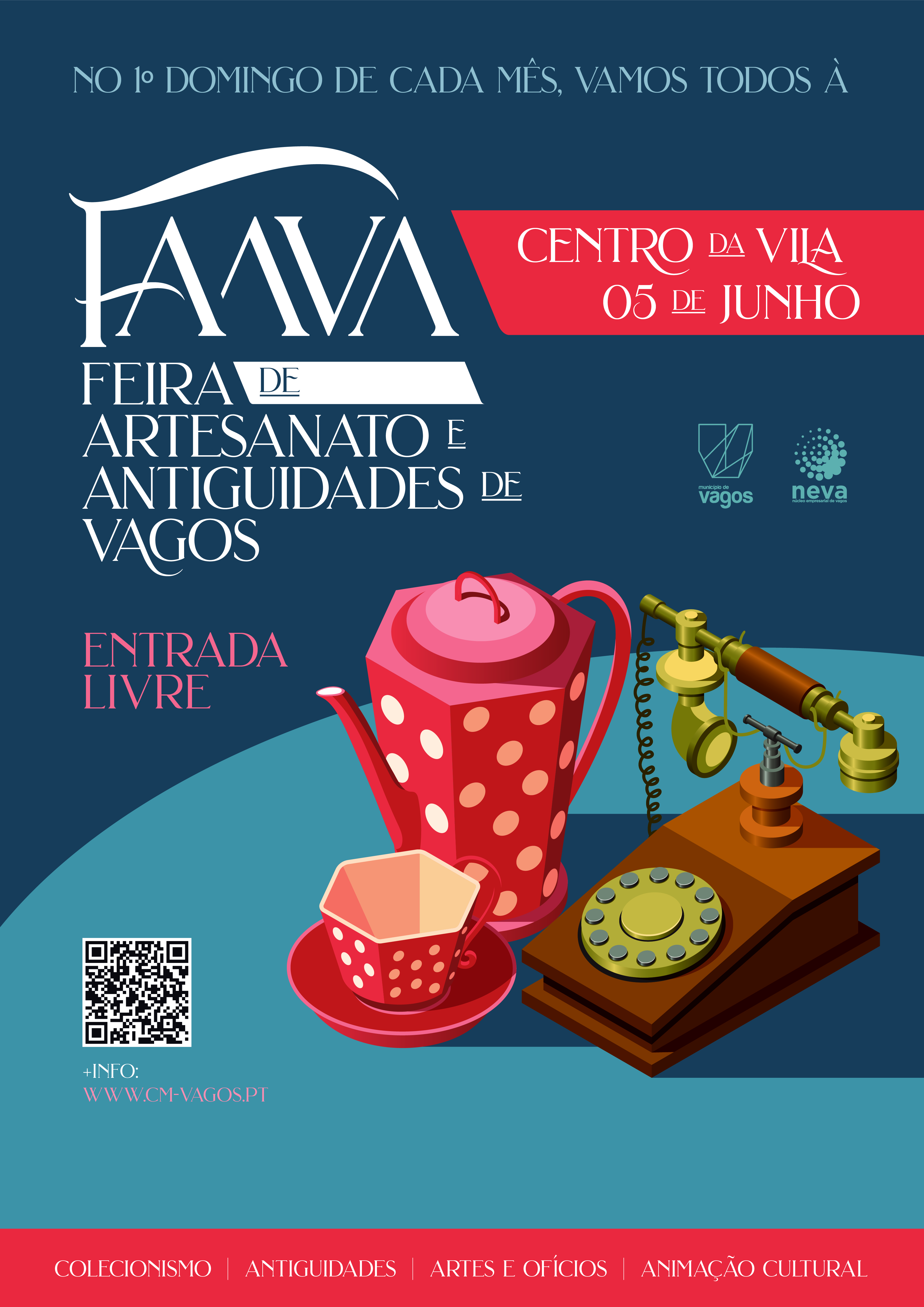 O Município de Vagos e o Núcleo Empresarial de Vagos (NEVA) irão realizar, no próximo dia 5 de junho de 2022, entre as 09h00 e as 19h30, na Pérgola de Vagos (Centro da Vila de Vagos), a 3ª edição da FaaVa – Feira de Artesanato e Antiguidades de Vagos.
