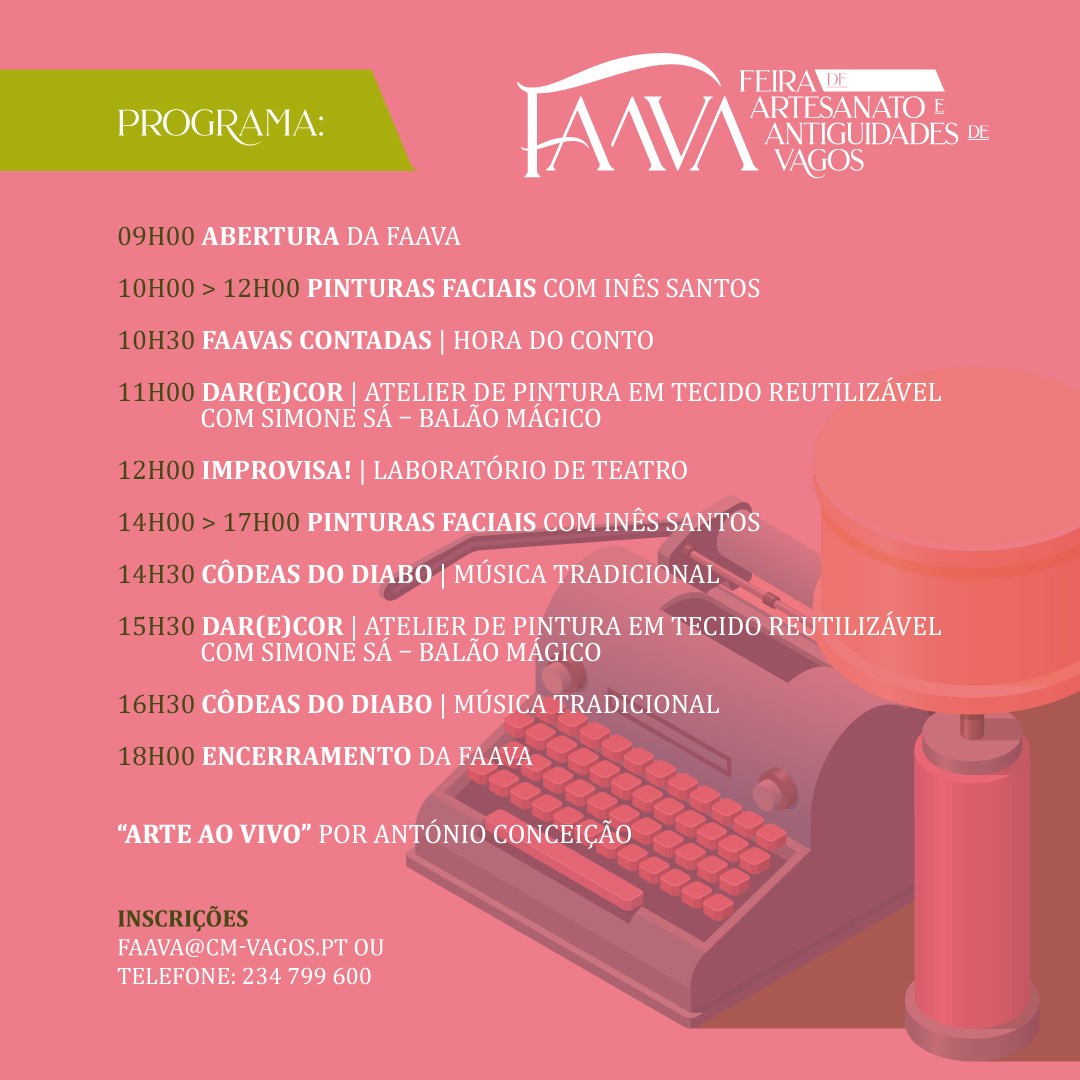 A FaaVa – Feira de Artesanato e Antiguidades de Vagos realiza-se no primeiro domingo de cada mês e tem como intuito valorizar o artesanato e promover os valores patrimoniais, culturais e turísticos do Concelho de Vagos.