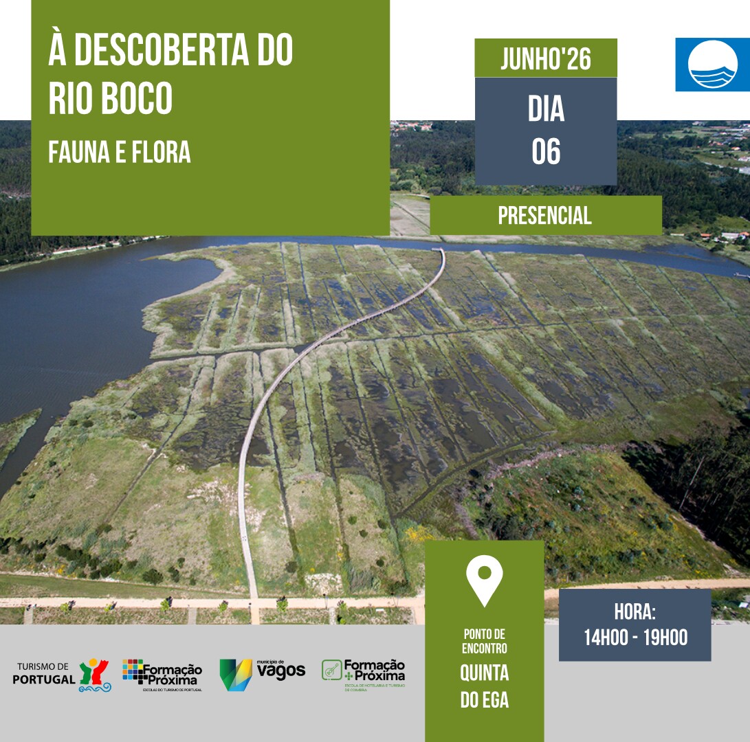 O Turismo de Portugal e o Município de Vagos promovem, nos dias 6 de junho de 2026, a formação “À Descoberta do Rio Boco:flora e fauna", que terá como ponto de encontro a Quinta do Ega