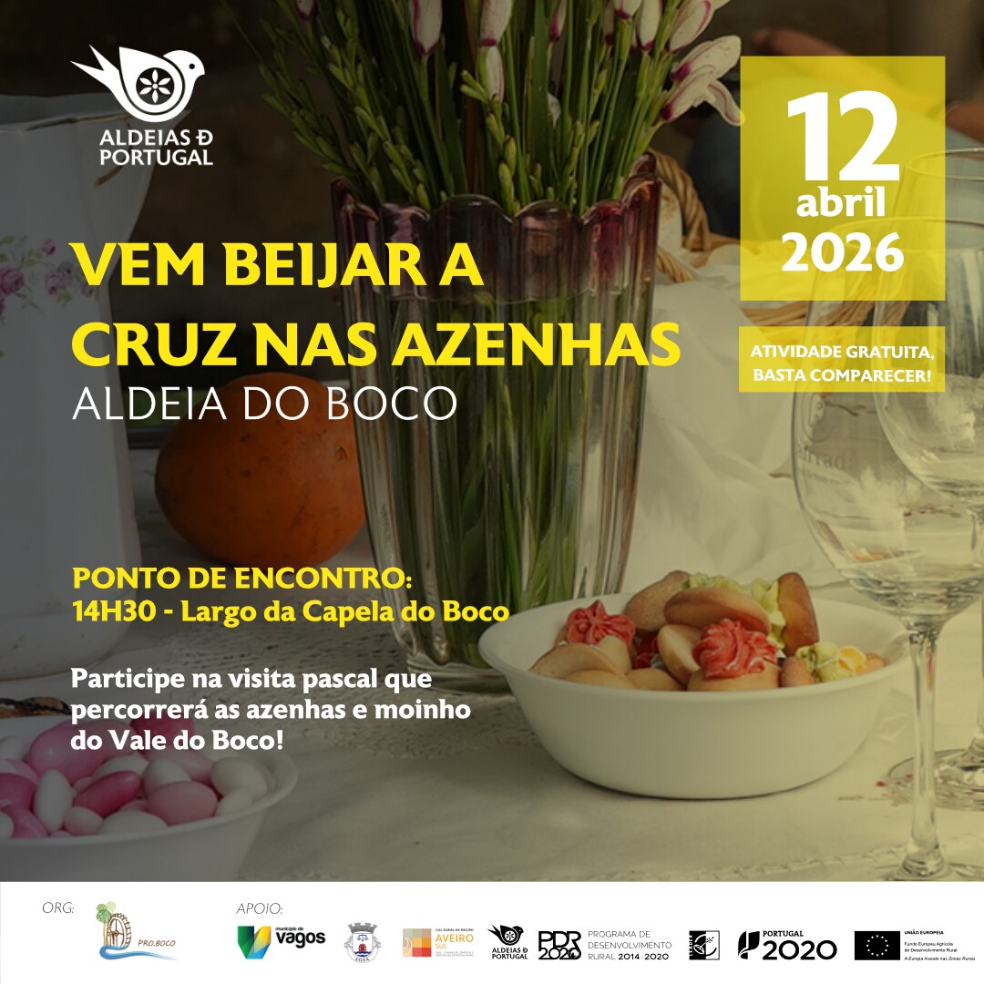 No âmbito do Plano de Valorização da Aldeia do Boco, realiza-se no próximo dia 12 de abril a atividade “VemBeijar a Cruz nas Azenhas”, integrada nas celebrações da Pascoela da aldeia, tradição profundamente enraizada na comunidade local.