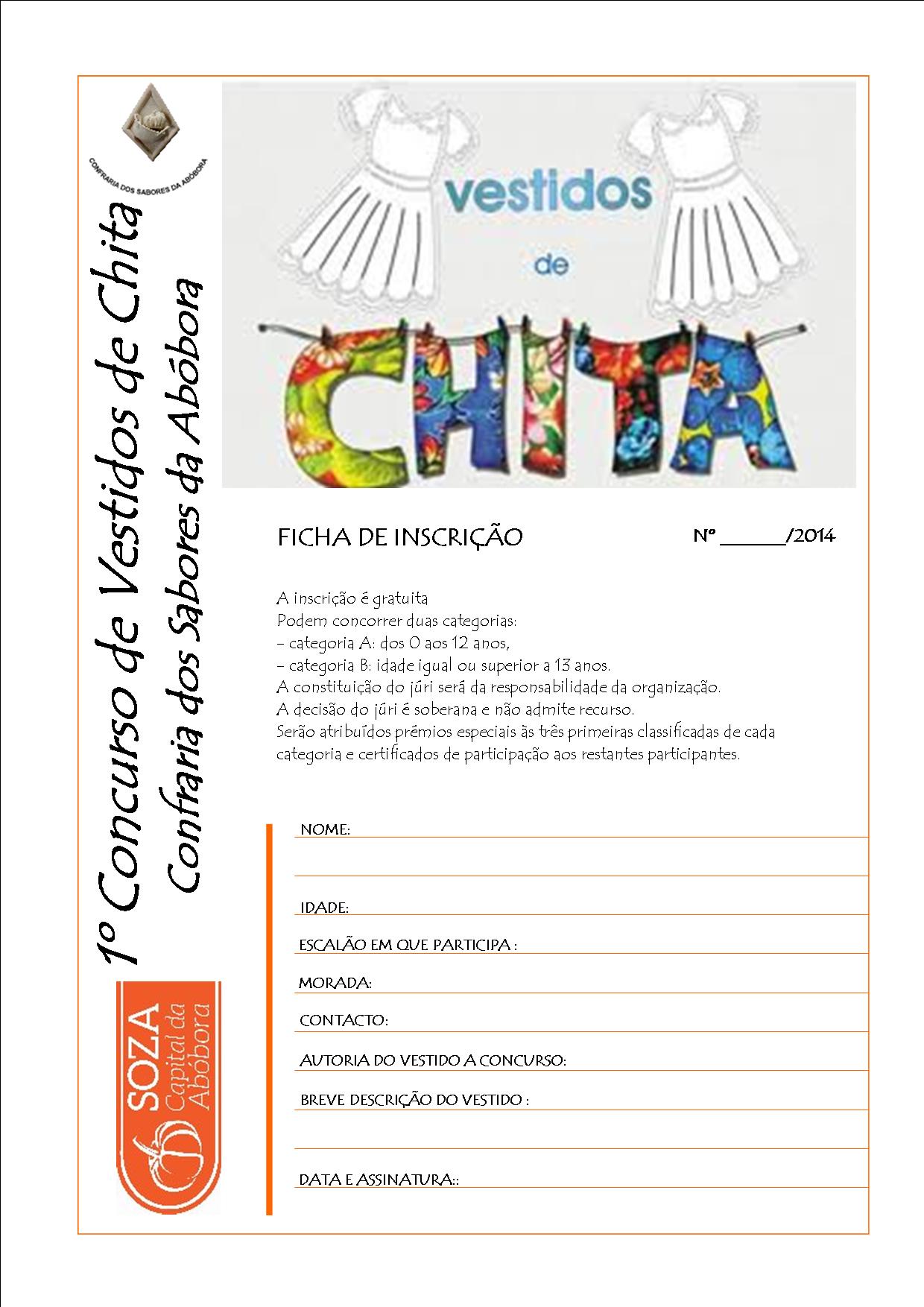 Com o objetivo de angariar fundos para ajudar a Associação Desportiva e Cultural Sozense, a Confraria dos Sabores da Abóbora irá promover, para toda a comunidade do concelho de Vagos, o Concurso de Vestidos de Chita.