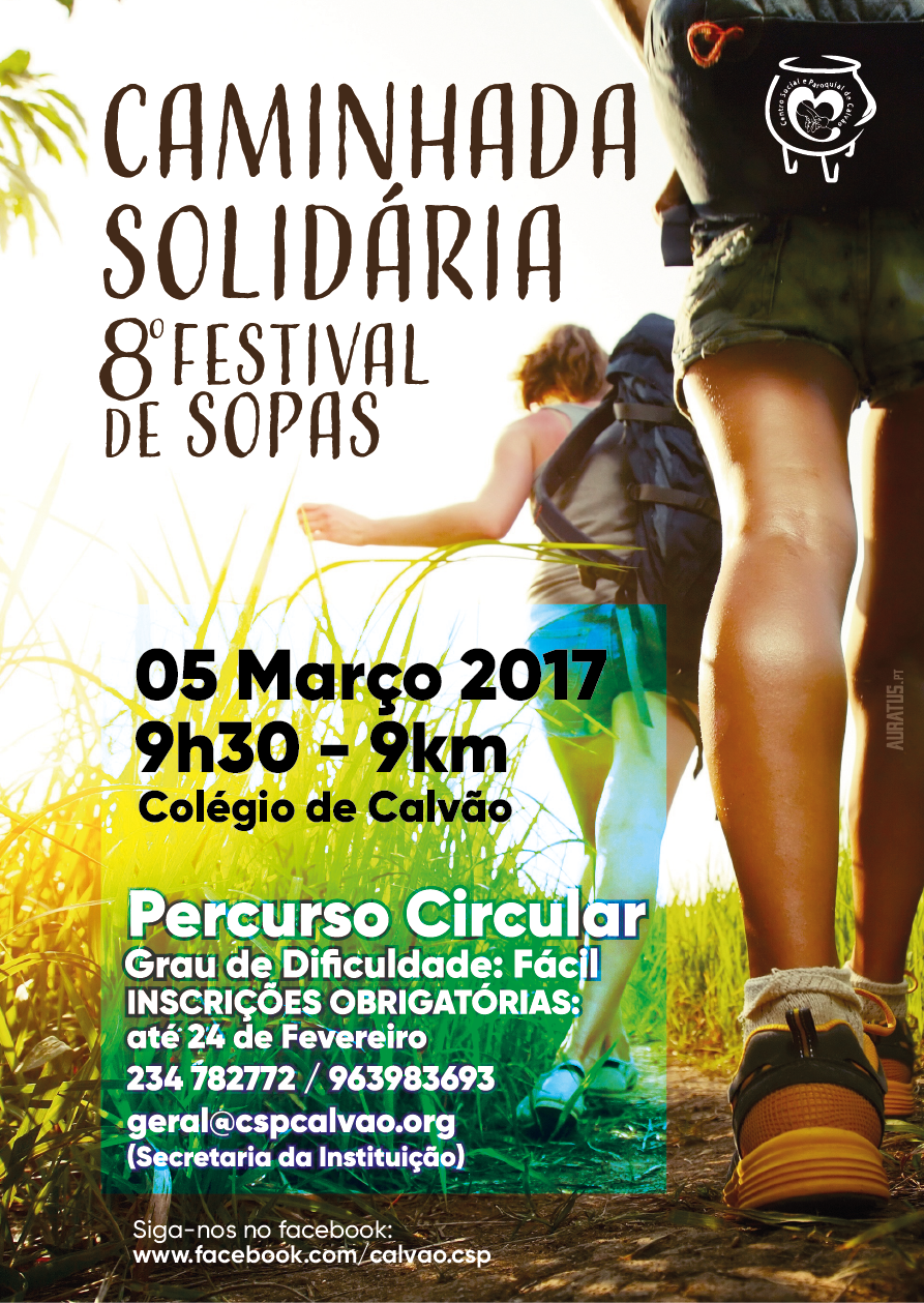 No domingo, logo pela manhã, às 09h30, realiza-se a Caminhada Solidária, com ponto de partida no Colégio de Calvão. Será um percurso circular com uma distância de, aproximadamente, 9 km. A inscrição deve ser feita até ao dia 24 de fevereiro e a mesma dá direito a entrada no festival de sopas, neste dia. As inscrições na caminhada são obrigatórias e deve ser feita para os seguintes contactos: