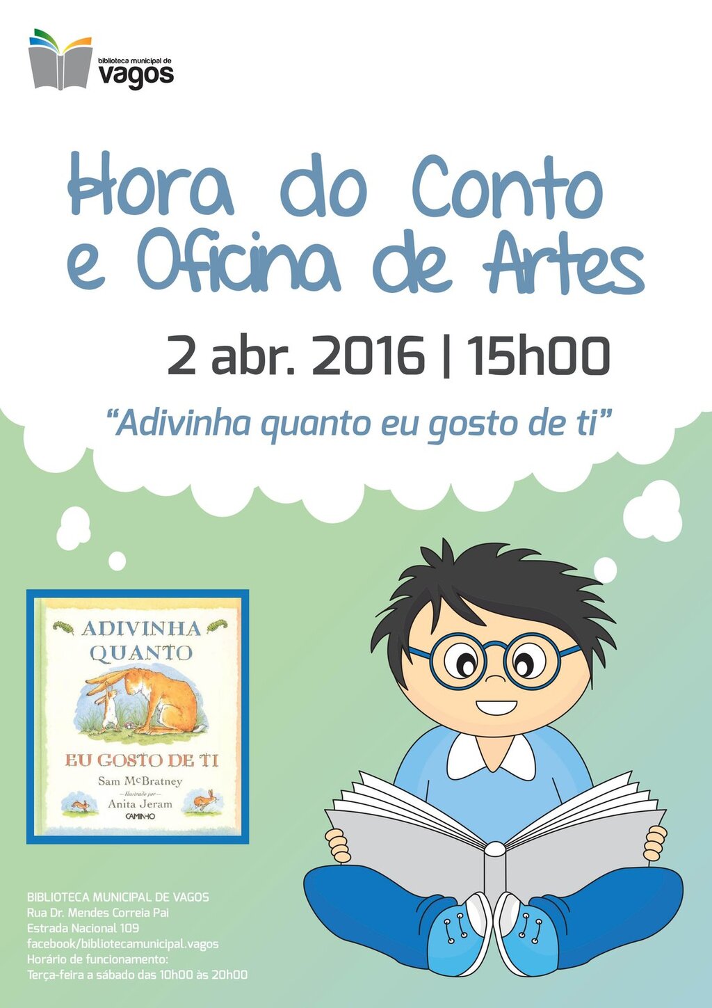 No próximo sábado, dia 2 de abril de 2016, é dia da “Hora do Conto”, na Biblioteca Municipal de Vagos.