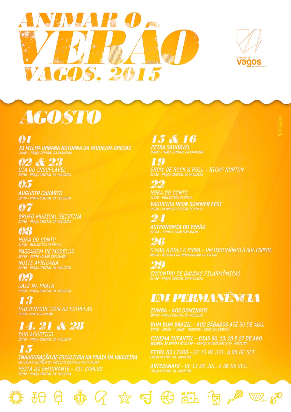 Já se encontra disponível o programa, para agosto, do Animar o Verão 2015, que promete continuar a contagiar o Município de Vagos com muita cor e animação!