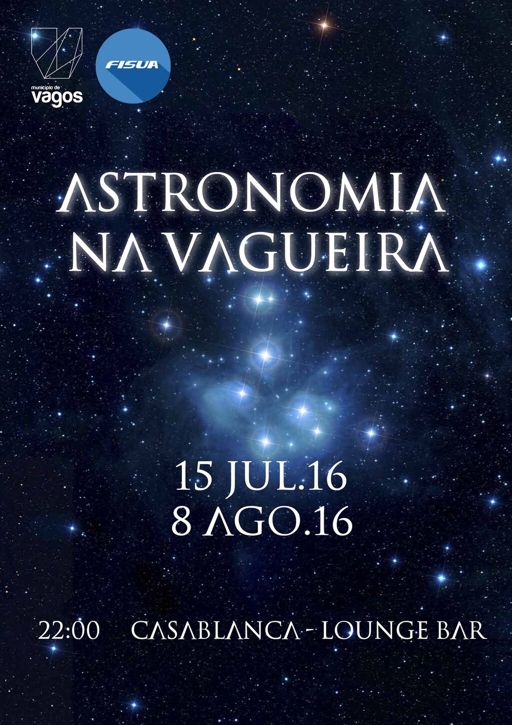 Venha no dia 8 de agosto de 2016, à Praia da Vagueira (junto ao Casablanca Lounge Bar), pelas 22h, e observe as estrelas, a Lua e os planetas do sistema solar, espreite objetos longínquos no firmamento, na companhia de astrónomos e dos seus telescópios, é o desafio do programa Astronomia na Vagueira.