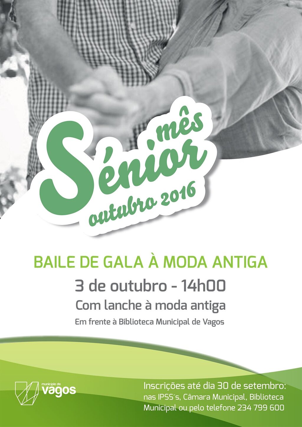 O início do Mês Sénior é marcado com o Baile de Gala à Moda Antiga acompanhado de um lanche à moda antiga, em frente à Biblioteca Municipal de Vagos.