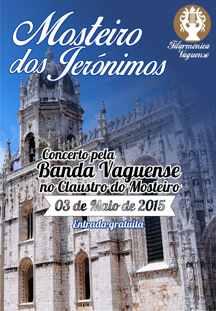 Integrada no ciclo de música “Jovens Músicos, Novos Ouvintes”, a Banda Vaguense estará presente, no dia 3 de maio de 2015, no Mosteiro dos Jerónimos, com mais um fantástico concerto, num lugar cheio de história. Venha assistir a este concerto, a entrada é gratuita.