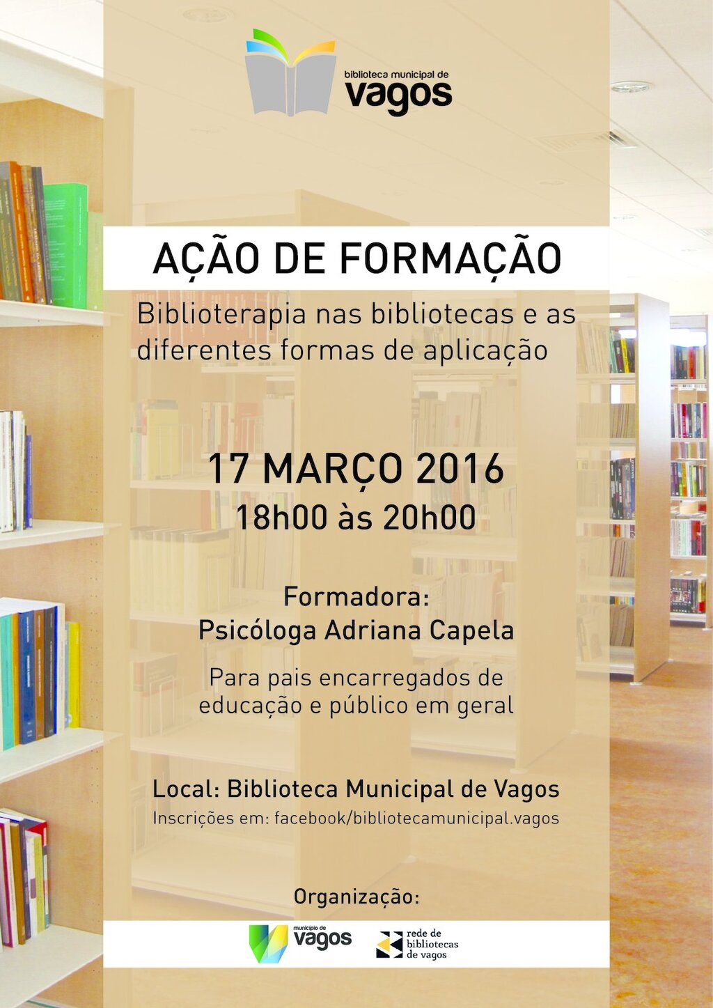 No dia 17 de março decorre, na Biblioteca Municipal de Vagos, uma ação de formação com o tema “Biblioterapia nas bibliotecas e as diferentes formas de aplicação”.