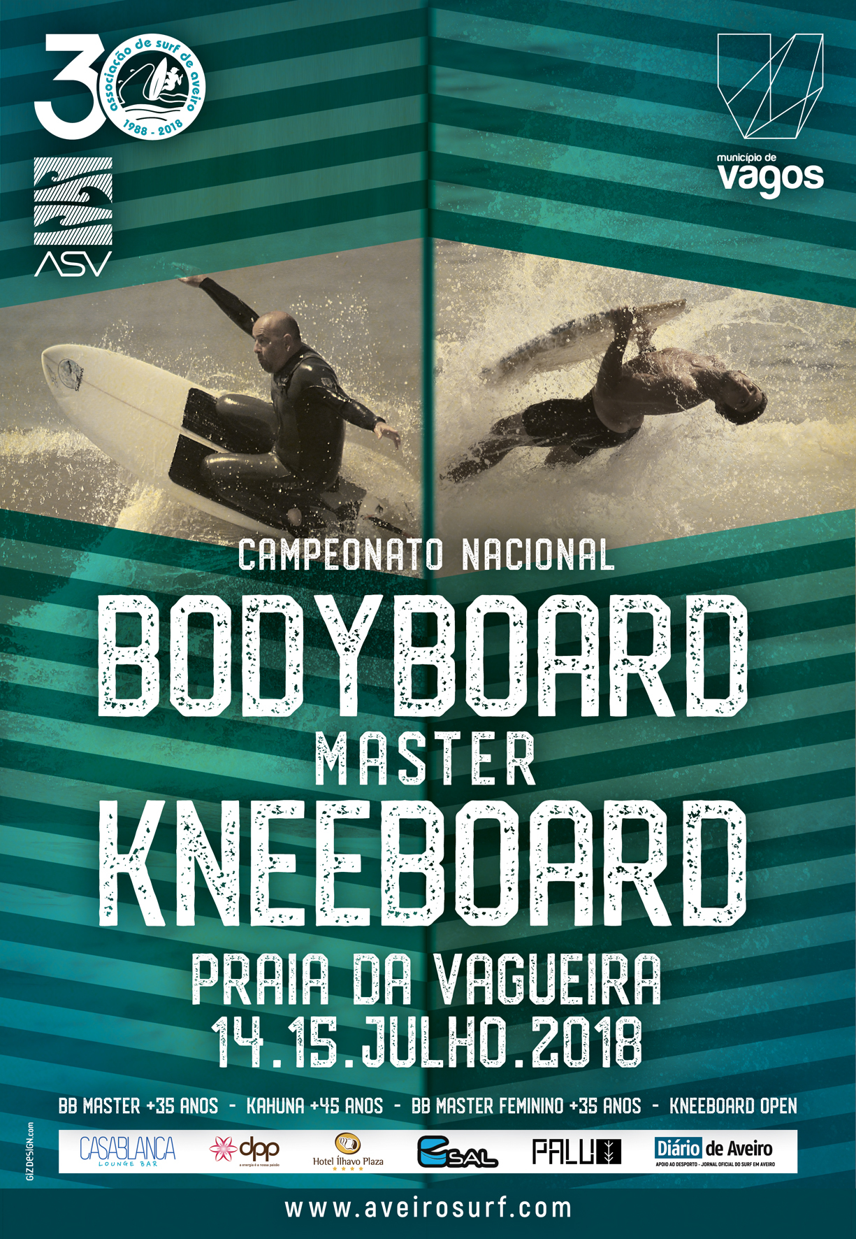 O Município de Vagos, em parceria com a Associação Surf Aveiro e a Associação de Surfistas de Vagos, estão a organizar o Campeonato Nacional de Bodyboard e Kneeboard Master na Praia da Vagueira, que irá decorrer nos dias 14 e 15 de julho de 2018.