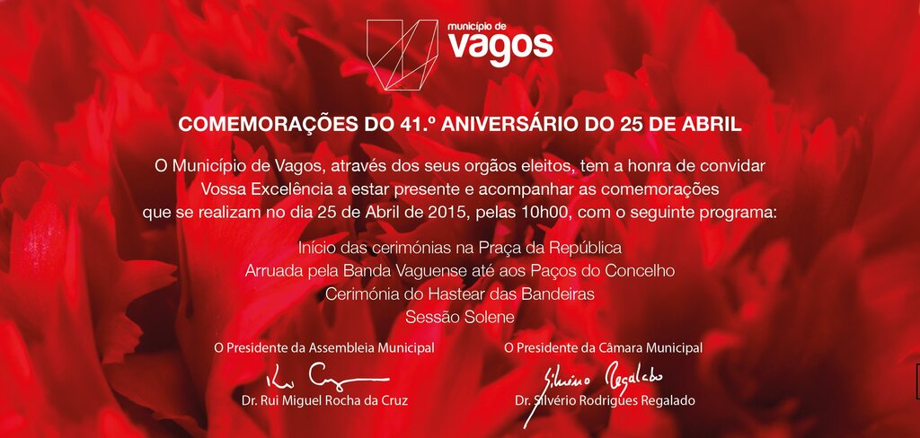 A Assembleia Municipal e a Câmara Municipal de Vagos convidam, a todos, a estarem presentes nestas comemorações.