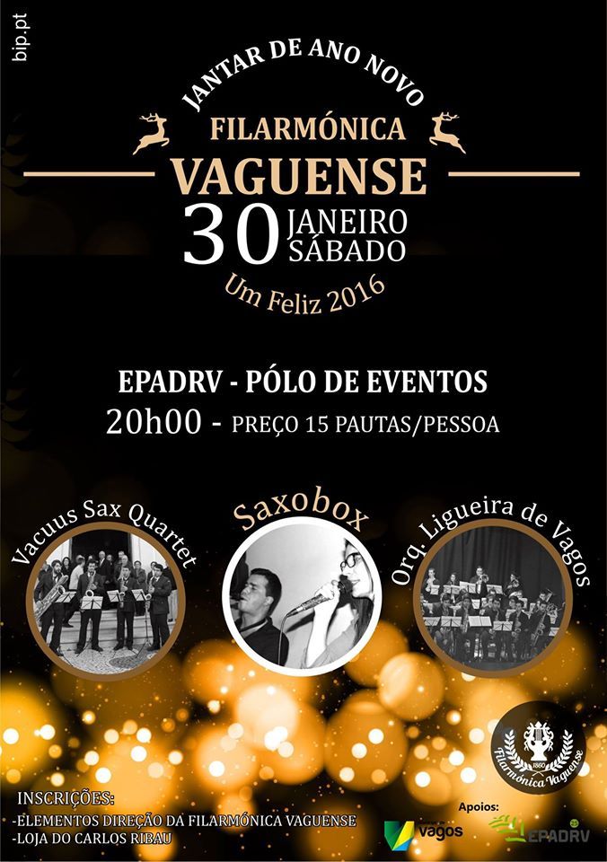 As inscrições para o jantar devem ser feitas junto dos elementos da direção da Filarmónica Vaguense ou na loja do Sr. Carlos Ribau