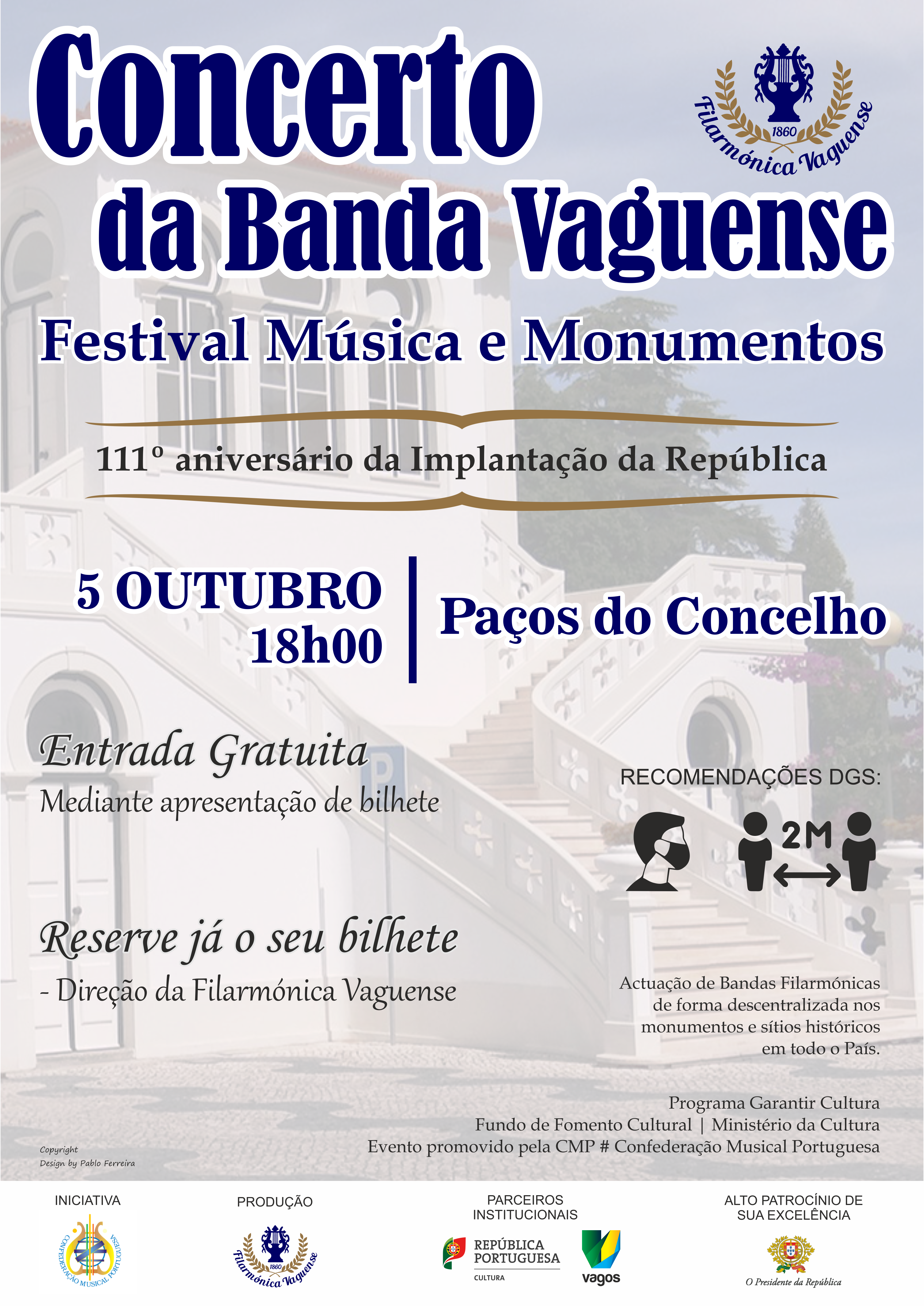 Na próxima terça-feira, dia 5 de outubro, decorre o Festival Música e Monumentos, numa organização e interpretação da Banda Vaguense.