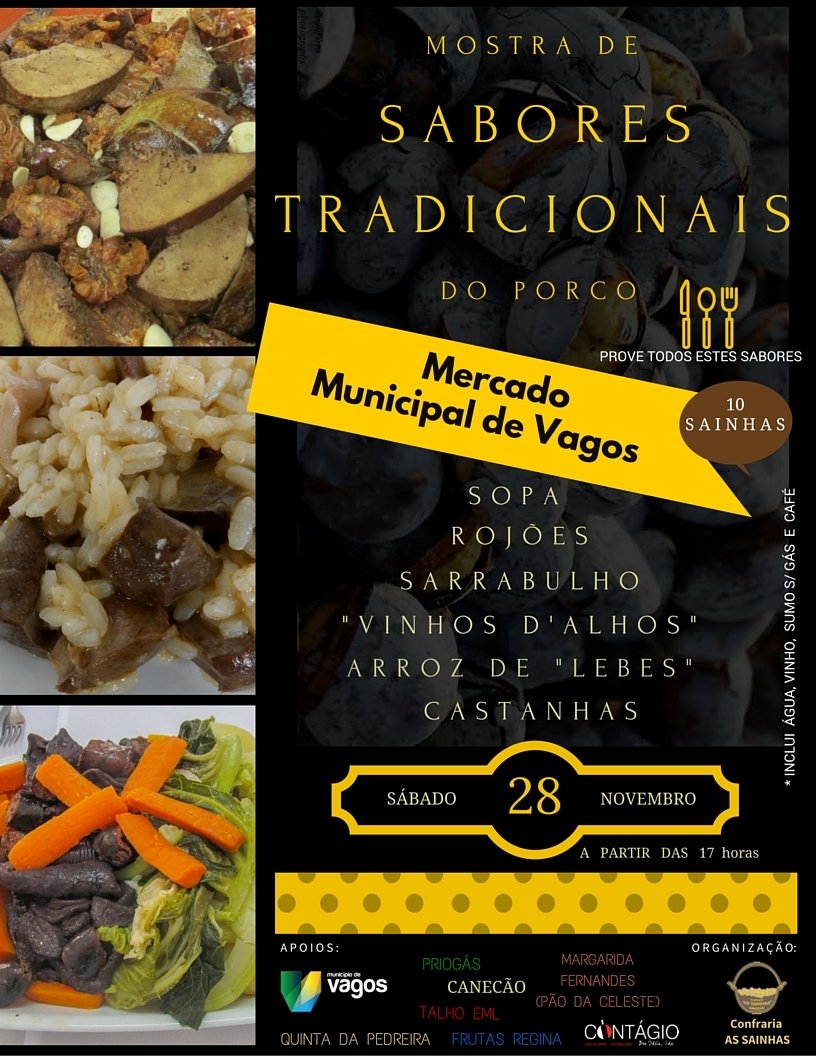 A Confraria As Sainhas vai promover uma mostra de sabores tradicionais, no dia 28 de novembro de 2015, pelas 17h, no Mercado Municipal de Vagos.