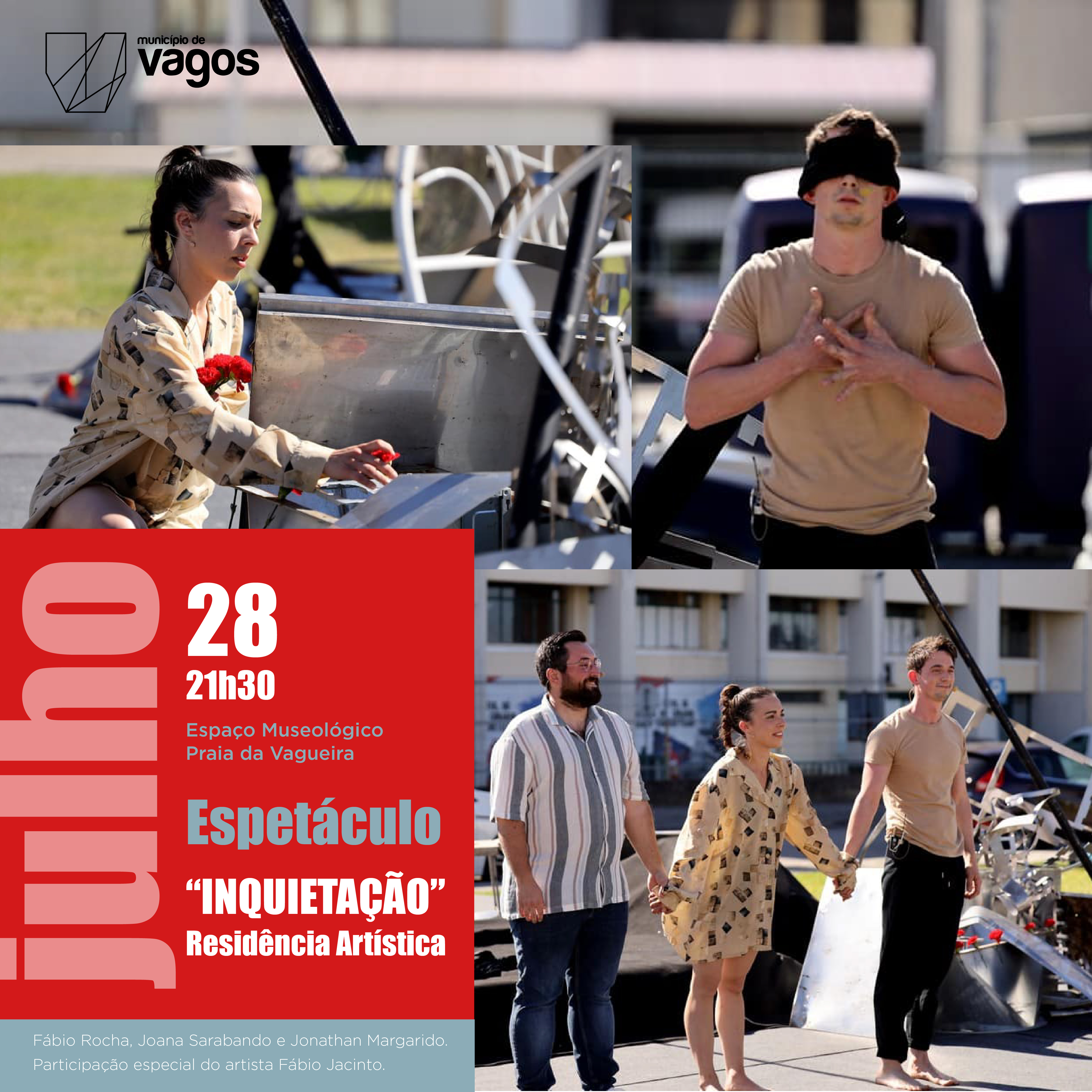 No dia 28 de julho de 2023 decorre, pelas 21h30, no Espaço Museológico, na Praia da Vagueira, o Espetáculo “Inquietação” - Residência Artística.