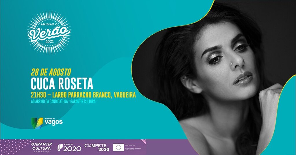Realiza-se, no sábado, dia 28 de agosto de 2021, o espetáculo musical com "CUCA ROSETA", às 21h30, no Largo Parracho Branco - Praia da Vagueira.