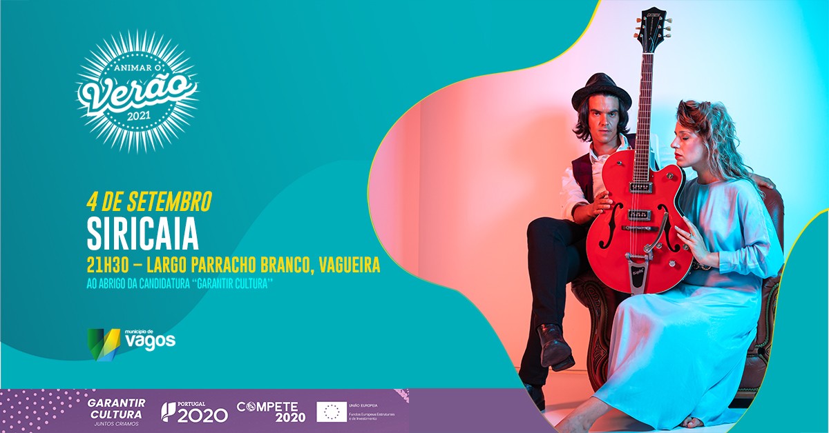 Realiza-se, no sábado, dia 4 de setembro de 2021, o espetáculo musical com "SIRICAIA", às 21h30, no Largo Parracho Branco - Praia da Vagueira.