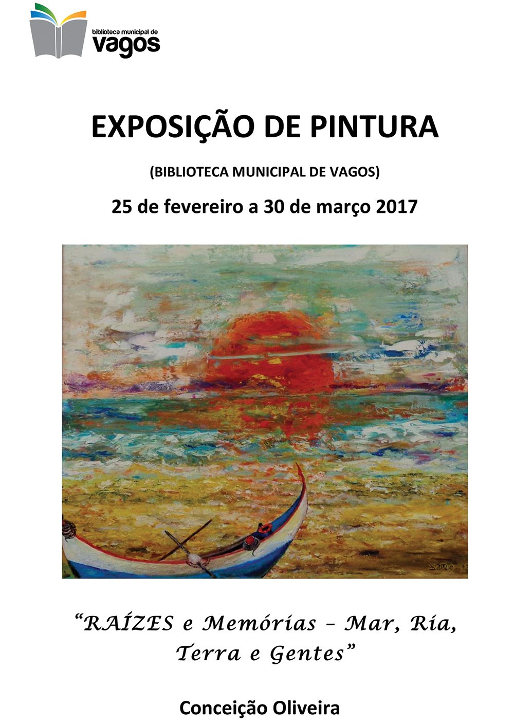 Encontra-se patente, até dia 30 de março de 2017, na Biblioteca Municipal de Vagos, a exposição “RAÍZES e Memórias – Mar, Ria, Terra e Gentes” de Conceição Oliveira.