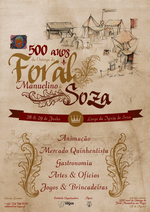Este ano, o Município de Vagos comemora 500 anos da outorga dos Forais Manuelinos de Soza e Vagos. Para assinalar tão importantes acontecimentos, a Câmara Municipal de Vagos está a promover dois eventos únicos, com conteúdos alusivos ao momento histórico e de grande envolvimento da comunidade.