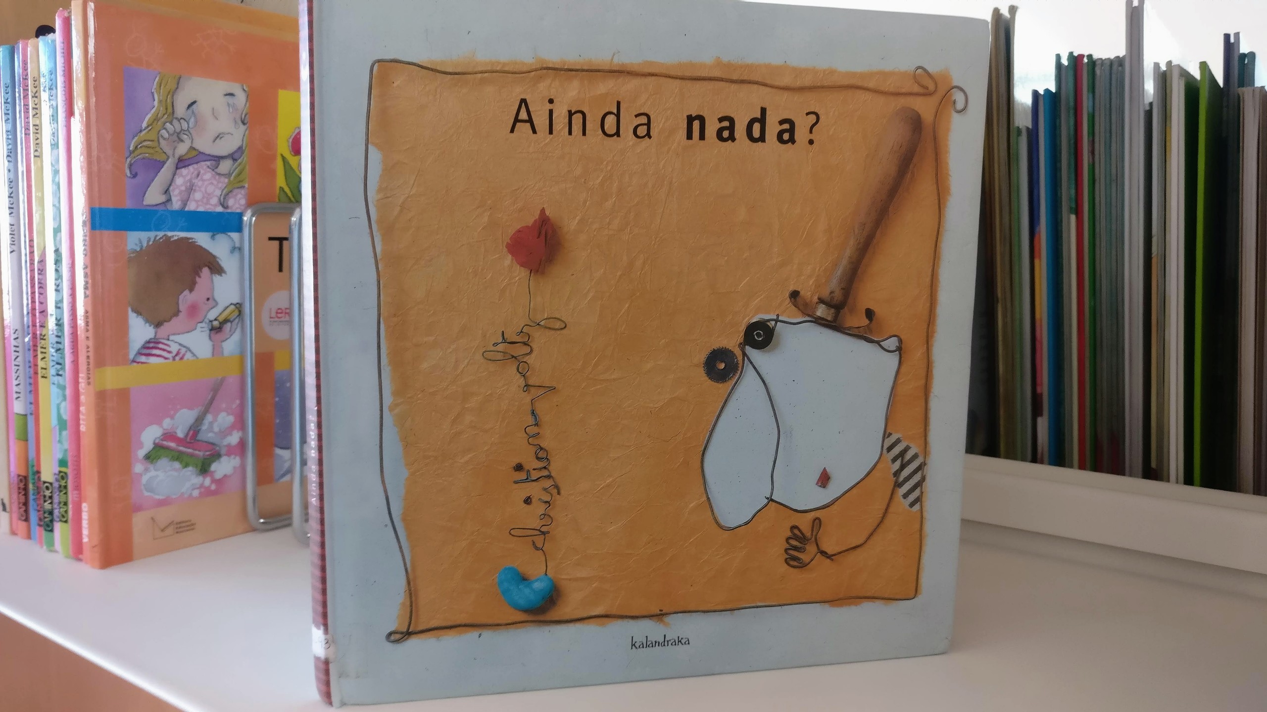 “Um dia, o protagonista desta história cava um buraco na terra e deixa cair lá dentro uma semente. Dia após dia, sob o olhar expectante de um pássaro, vai crescendo nele o desejo e a ansiedade de ver brotar do chão a flor que plantou. Ainda nada?, pergunta ele todas as manhãs ao ver que a semente não nasce. Até que um belo dia...”