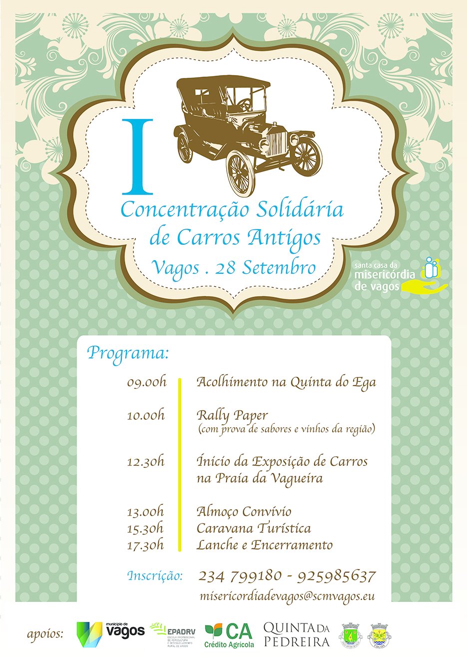 A Misericórdia de Vagos está a organizar uma concentração/exposição de carros antigos com objetivo de angariar fundos destinados a apoiar esta instituição na prossecução dos seus fins de caráter solidário.