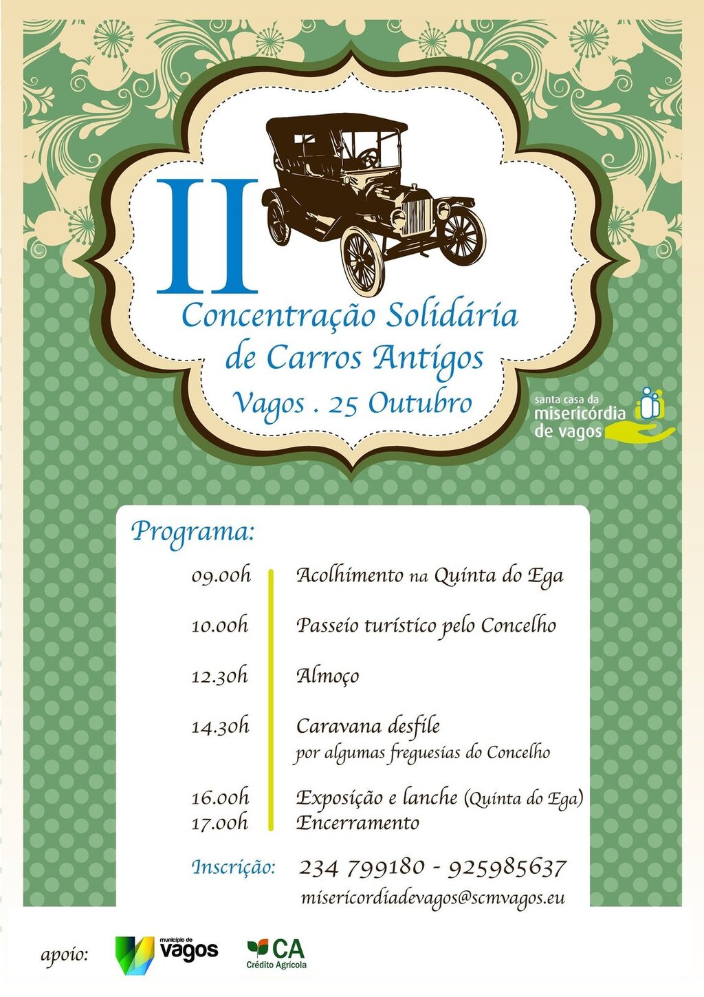 A Santa Casa da Misericórdia de Vagos está a organizar, pelo segundo ano consecutivo, uma concentração/exposição de carros antigos, que se realiza no próximo dia 25 de outubro de 2015, pelas 9h00, no concelho de Vagos.