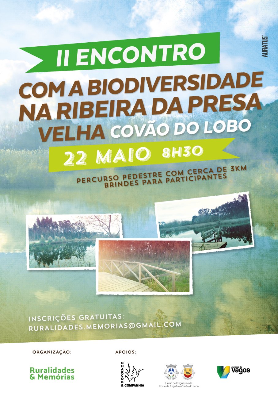 A Associação Ruralidades & Memórias promove, no dia 22 de maio, o II Encontro com a Biodiversidade na Ribeira da Presa Velha, em Covão do Lobo. O percurso será orientado pela Associação Charcos e Companhia e pretende dar a conhecer algumas das espécies de fauna e flora desta zona.