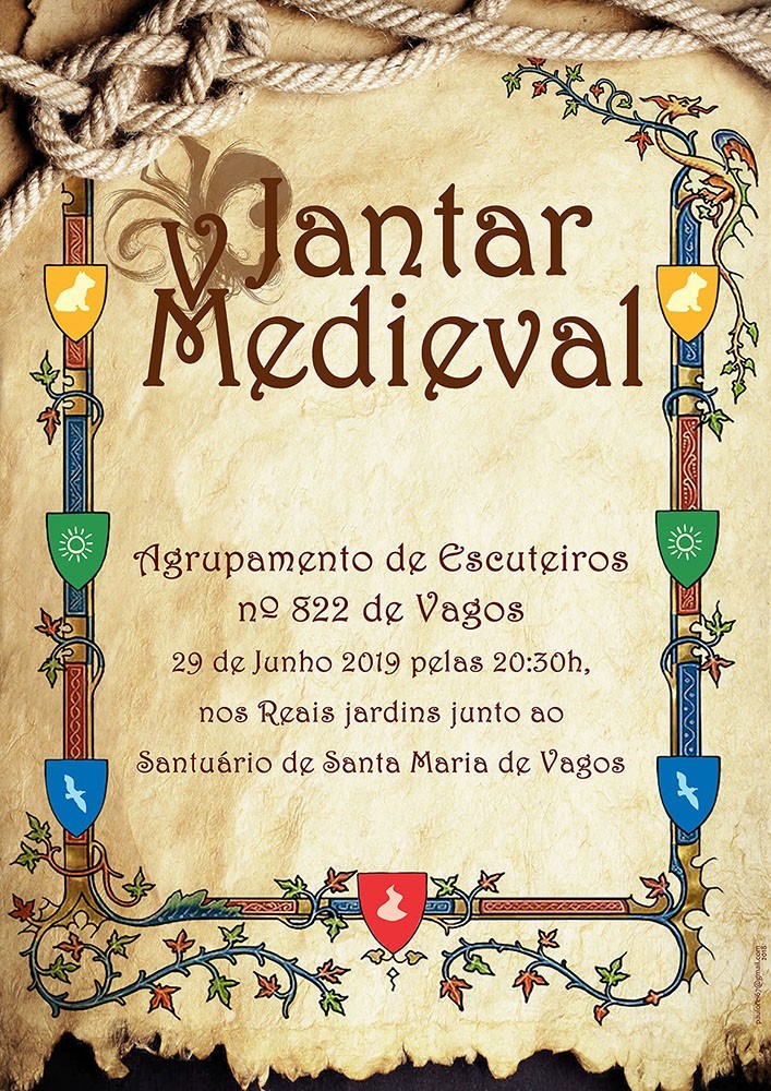 Decorre, no dia 29 de junho, pelas 20h30, um Jantar Medieval, organizado pelo Agrupamento de Escuteiros de Vagos.