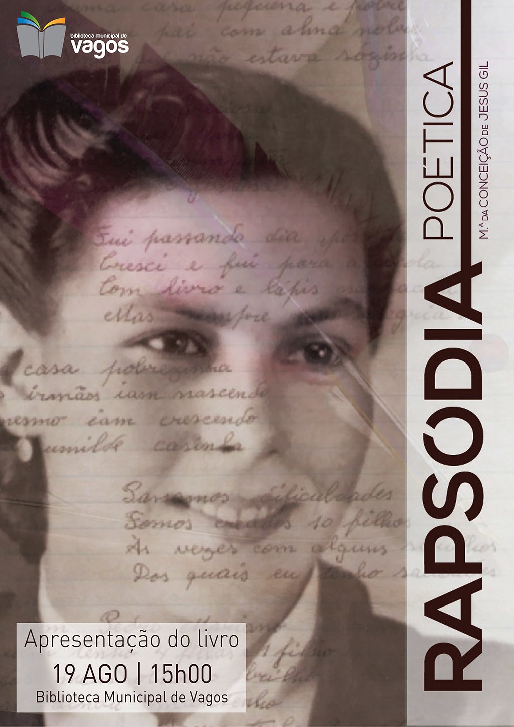 Realiza-se, no dia 19 de agosto, pelas 15h00, no auditório da Biblioteca Municipal de Vagos, o lançamento do livro de poesias “Rapsódia Poética”, de Maria da Conceição de Jesus Gil.