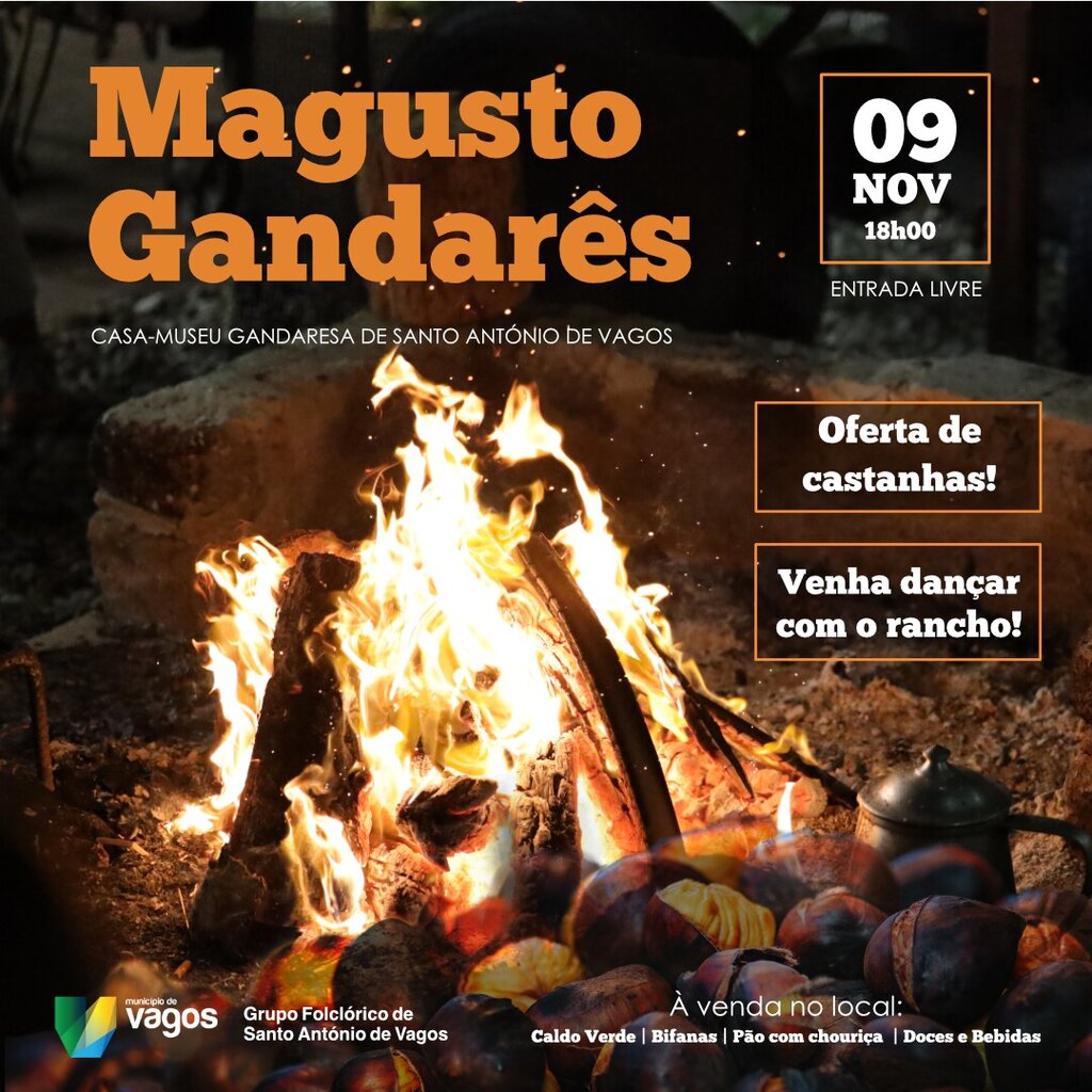 No próximo dia 9 de novembro de 2024, às 18h00, o Grupo Folclórico de Santo António de Vagos irá realizar o Magusto Gandarês, no pátio da casa gandaresa, com oferta gratuita de castanhas e com promessa de muita animação.