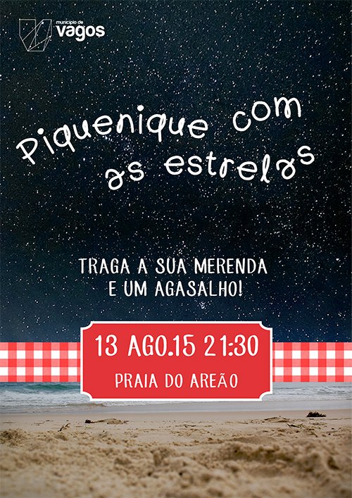 No próximo dia 13 de agosto de 2015, realiza-se, no areal da Praia do Areão, pelas 21h30, a atividade “Piquenique com as estrelas”, onde se convida, às famílias e população em geral, a observar as estrelas e, ao mesmo tempo, conviver com todos os presentes, num piquenique noturno. A observação das estrelas será feita com recurso a um telescópio e explicada pela FISUA.