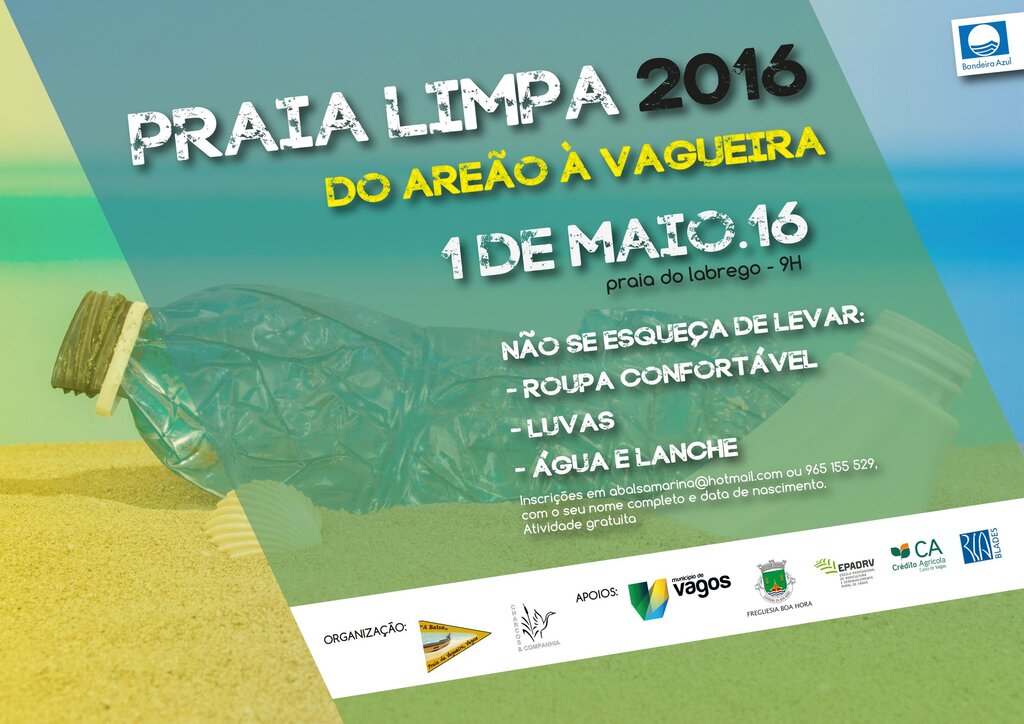 Realiza-se, no dia 1 de maio, a atividade “Praia Limpa 2016”, no âmbito do programa da Bandeira Azul, com ponto de encontro marcado para as 9h, na praia do Labrego.