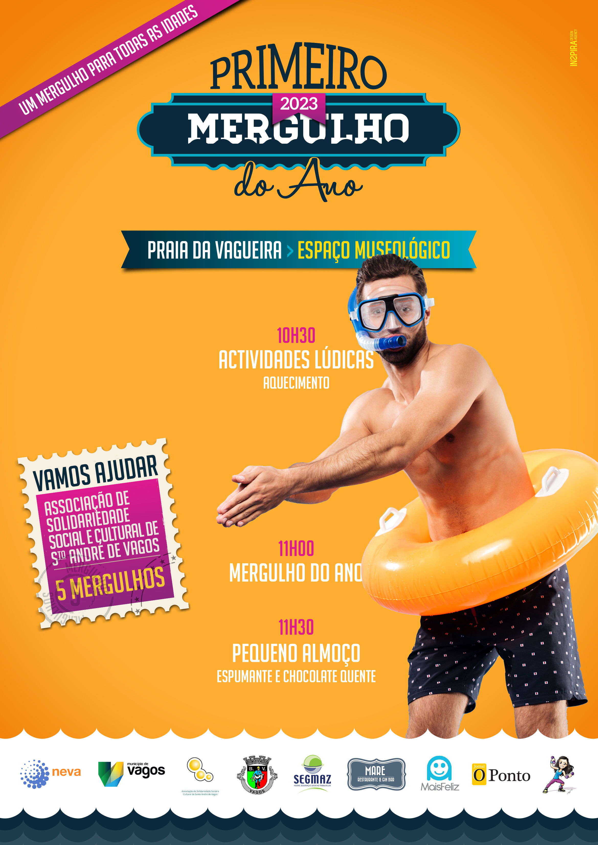 Venha dar as boas-vindas ao novo ano! Aventure-se a mergulhar e participe nas atividades lúdicas que temos previstas e delicie-se com o pequeno-almoço de espumante, chocolate quente e uma sandes de leitão.