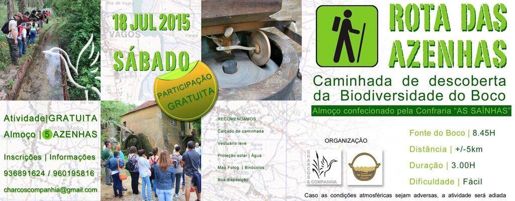 A Confraria Gastronómica "As Sainhas" de Vagos, em colaboração com a Associação Ambientalista "Charcos & Companhia" vai realizar, no próximo dia 18 de julho de 2015, uma Caminhada de descoberta da Biodiversidade de Vagos.