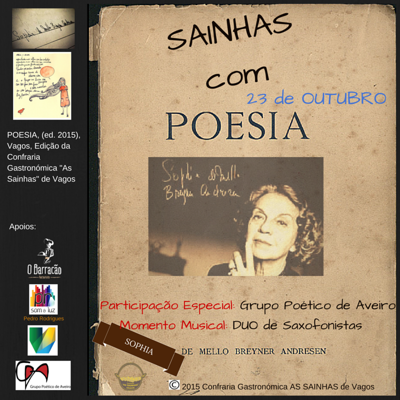 Como vem sendo habitual, chega o mês de outubro e a Confraria Gastronómica "As Sainhas" de Vagos organiza a atividade "Sainhas com Poesia". Este ano decorre no dia 23 de outubro, no Restaurante O Barração, em Vagos, onde à volta da mesa se reúne o sabor da tradição com o gosto pela poesia e pelas letras.
