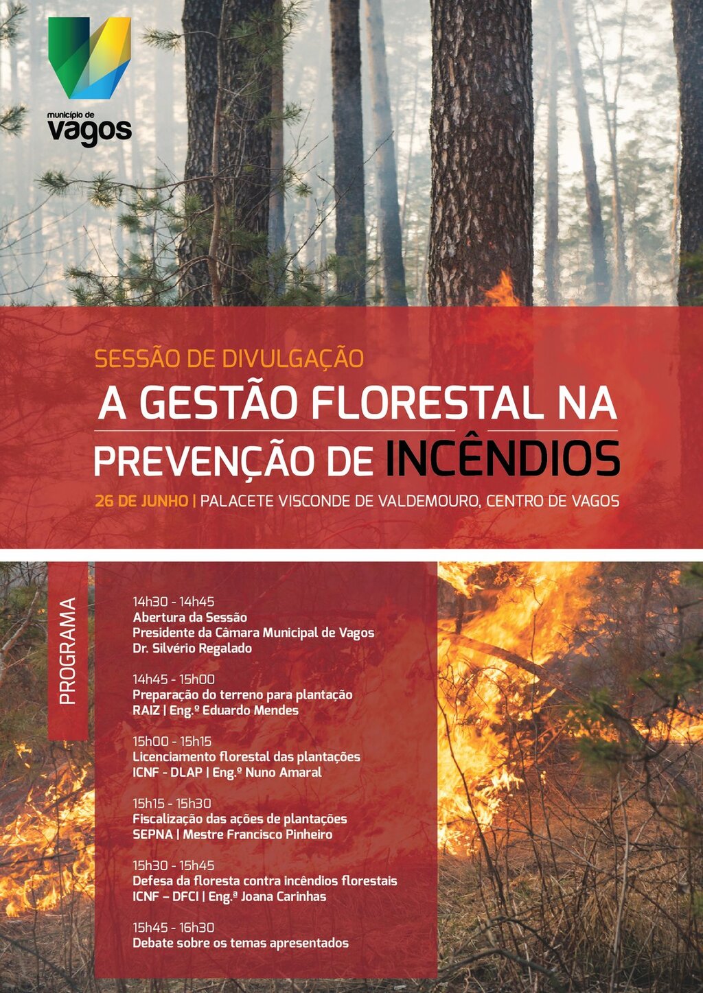 Realiza-se, no dia 26 de junho de 2015, pelas 14h30, no Palacete Visconde de Valdemouro, no centro de vila de Vagos, uma sessão de divulgação sobre a Gestão Florestal na Prevenção de Incêndios Florestais.