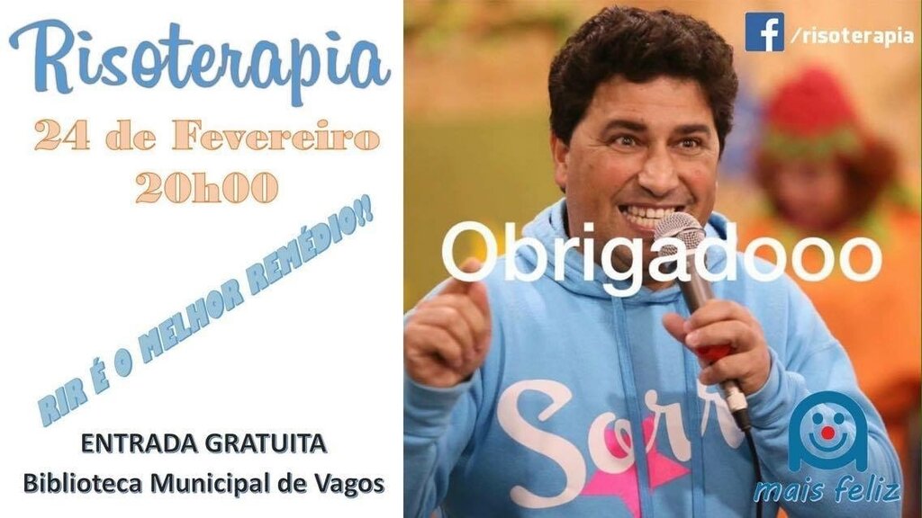 No próximo dia 24 de fevereiro, pelas 20h00, o Professor Fernando Batista estará na Biblioteca Municipal de Vagos para realizar uma sessão de risoterapia.