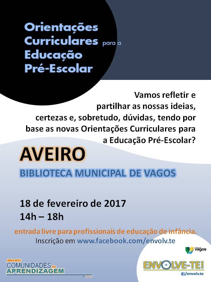 Este próximo sábado, dia 18 de fevereiro de 2017, das 14h00 às 18h00, a Biblioteca Municipal de Vagos recebe um simpósio sobre Orientações Curriculares para a Educação Pré-Escolar. A atividade tem como objetivo refletir e partilhar ideias, certezas e, sobretudo, dúvidas, tendo por base as novas orientações curriculares para a educação pré-escolar.