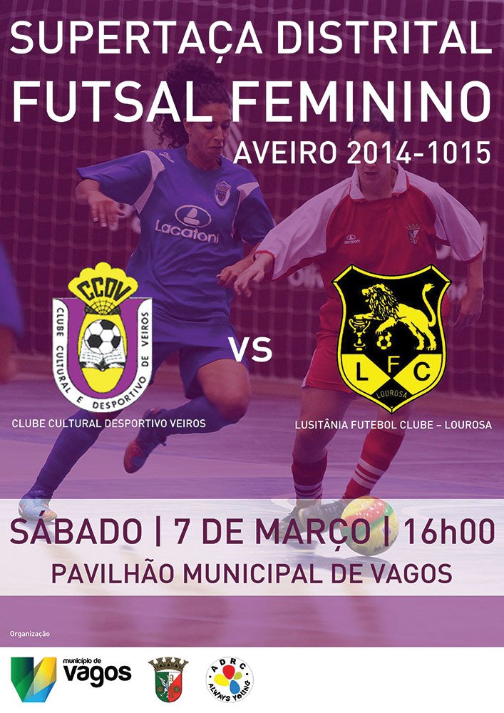 A final da Supertaça Distrital de Futsal Feminino irá decorrer, no próximo dia 7 de março de 2015, no Pavilhão Municipal de Vagos. O encontro com início às 16:00 horas vai ter como protagonistas, o Clube Cultural Desportivo de Veiros vs a Lusitânia Futebol Clube – Lourosa.