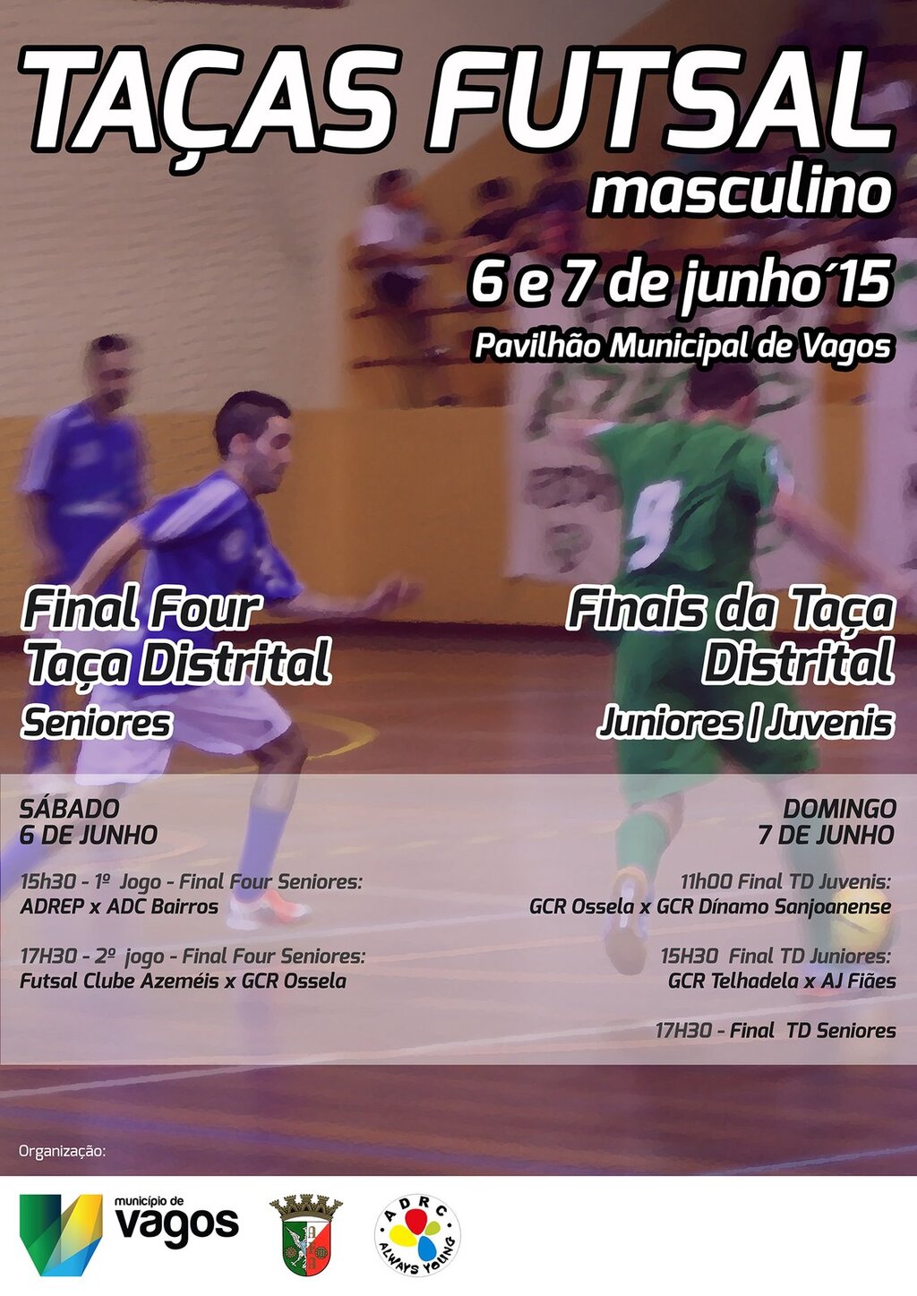 Nos próximos dias 6 e 7 de junho de 2015, realiza-se, no Pavilhão Municipal de Vagos, a Final Four da Taça Distrital de Séniores e as Finais da Taça Distrital de Juniores e Juvenis.