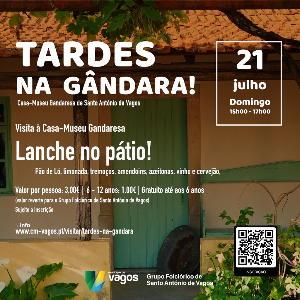 Esta atividade não termina por aqui e, de seguida,será possível usufruir do alpendre e do pátio da casa com um “Lanche no Pátio” que pretende recordar os convívios que se faziam na casa gandaresa aos domingos à tarde com tremoços, amendoins, azeitonas, vinho tinto e cervejão. Haverá, também, pão de ló caseiro e limonada.