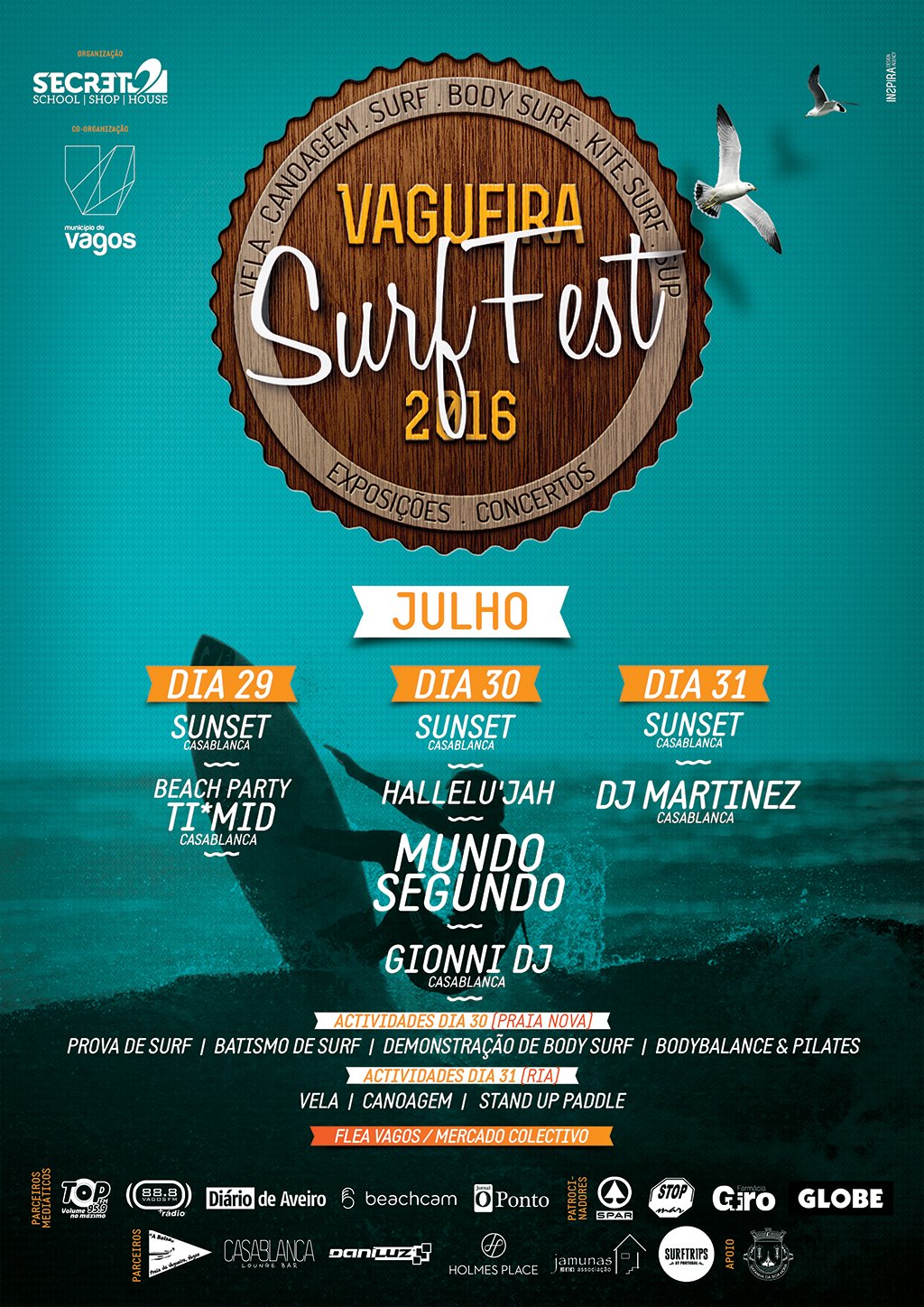 A Praia da Vagueira recebe, de 29 a 31 de julho de 2016, o “Vagueira Surf Fest” que vem, mais um ano, proporcionar três dias cheios de muita animação com diversas atividades desde vela, canoagem, surf, body surf, kite surf, exposições e concertos.