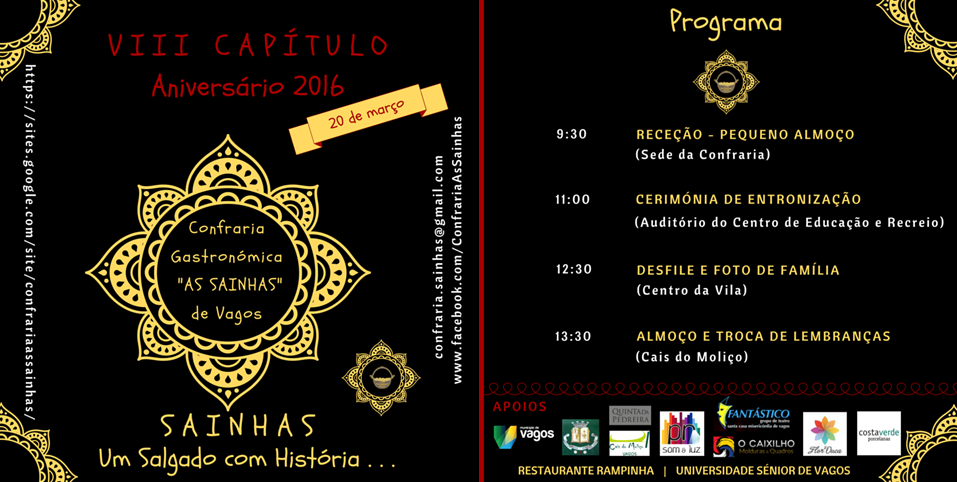 No dia 20 de março de 2016 a confraria “As Sainhas” de Vagos irá realizar a sua VIII Cerimónia Capitular.