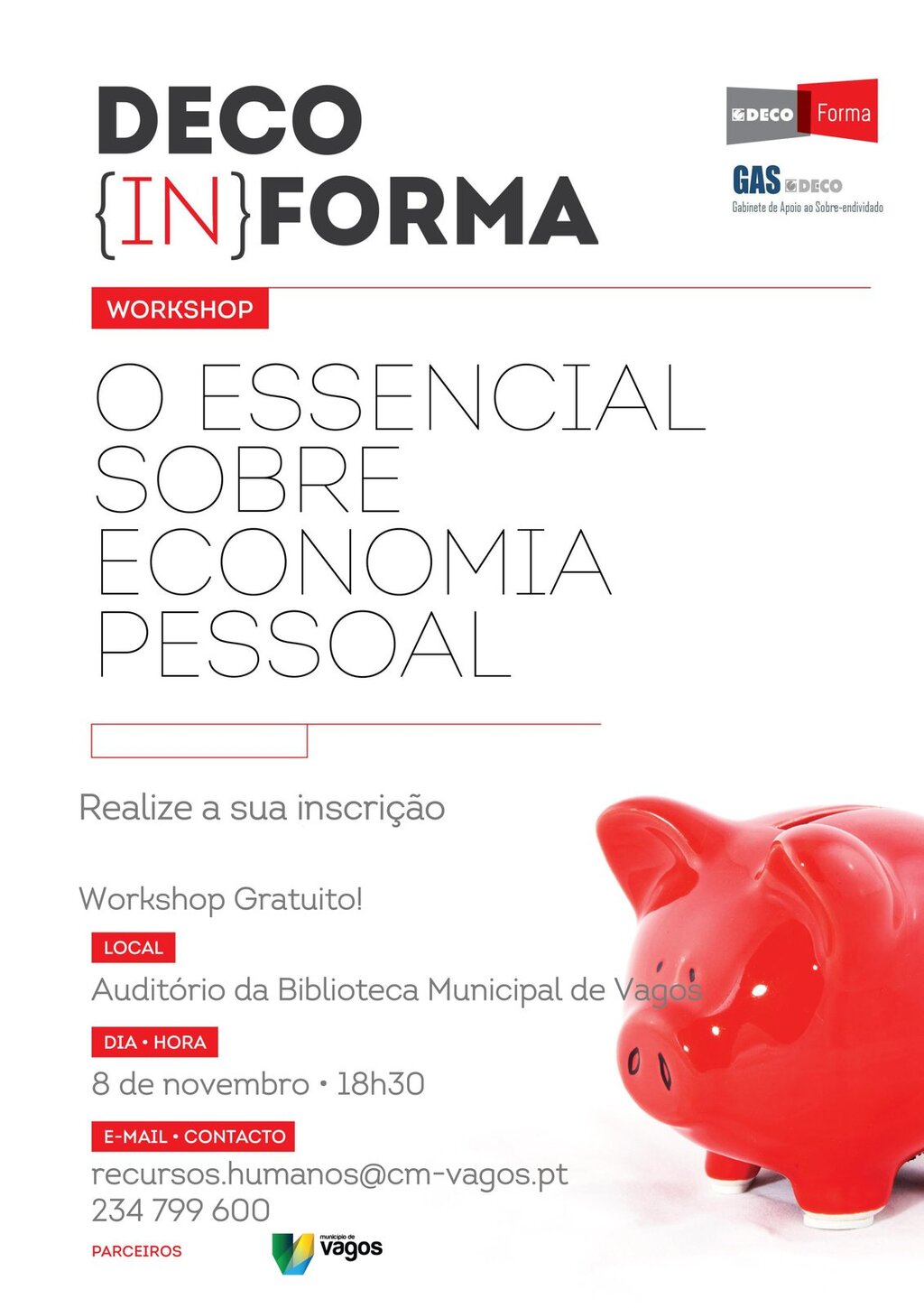 O Município de Vagos recebe, no próximo dia 8 de novembro de 2016, o workshop DECO {IN} FORMA “O essencial sobre a Economia Pessoal”, dinamizado pela DECO – Associação Portuguesa para a Defesa do Consumidor – Delegação Regional de Coimbra e dirigido à população em geral.