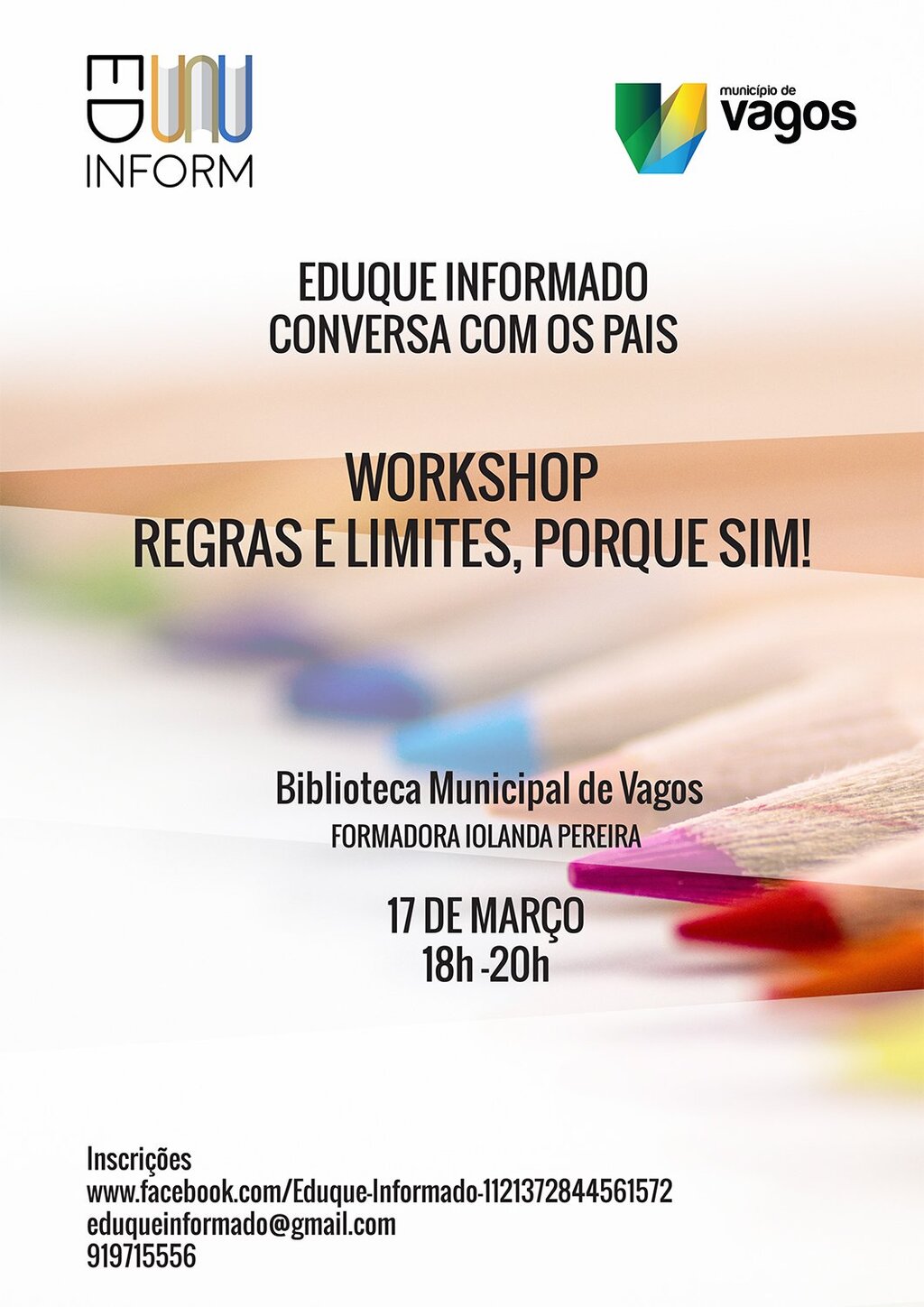 Decorre, no dia 17 de março de 2017, pelas 18h00, na Biblioteca Municipal de Vagos, um workshop sobre Regras e Limites, Porque Sim!. Este workshop aborda a importância de assumirmos o "sim" na formação dos nossos filhos!