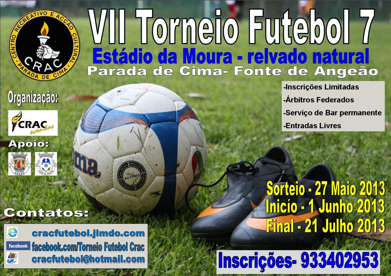 Encontram-se abertas as inscrições para a sétima edição do, já habitual, Torneio de Futebol de 7 C.R.A.C. 2013, que se realiza no Estádio da Moura, em Parada de Cima, na freguesia de Fonte de Angeão, durante o mês de junho e julho.