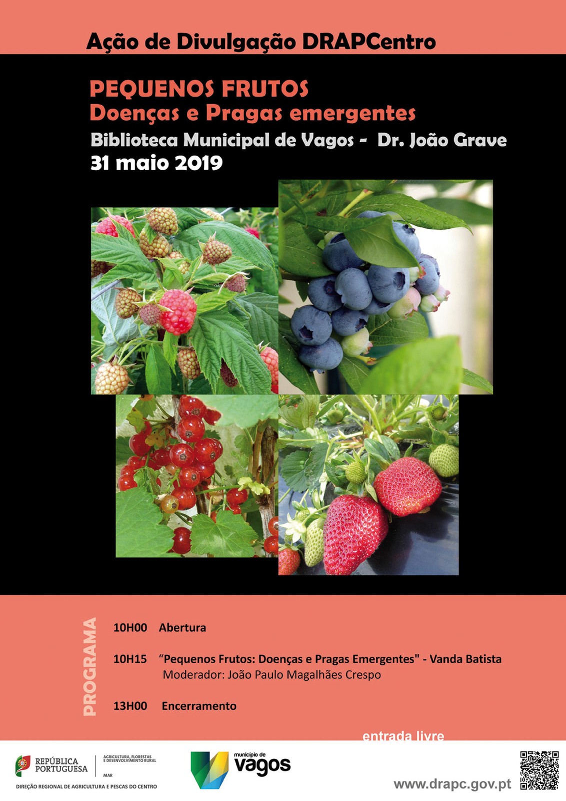 A Biblioteca Municipal João Grave recebe, no dia 31 de maio de 2019, pelas 10h00, uma ação de divulgação da DRAPCentro – Direção Regional de Agricultura e Pesca do Centro, subordinado ao tema “Pequenos Frutos: Doenças e Pragas Emergentes”