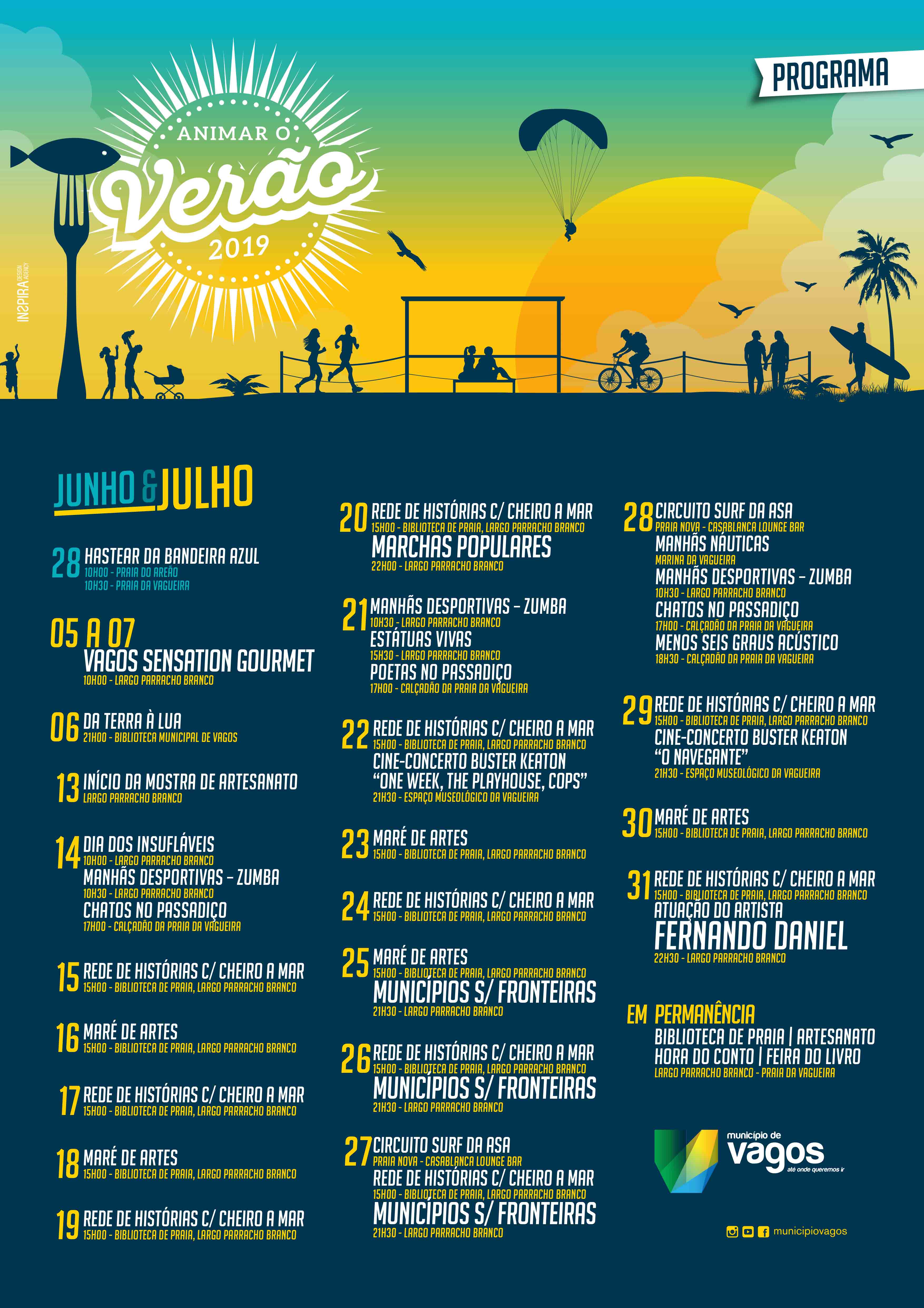 O Município de Vagos apresenta a programação de Animar o Verão, para o mês de julho, prometendo muitas atividades lúdicas, desportivas e culturais.