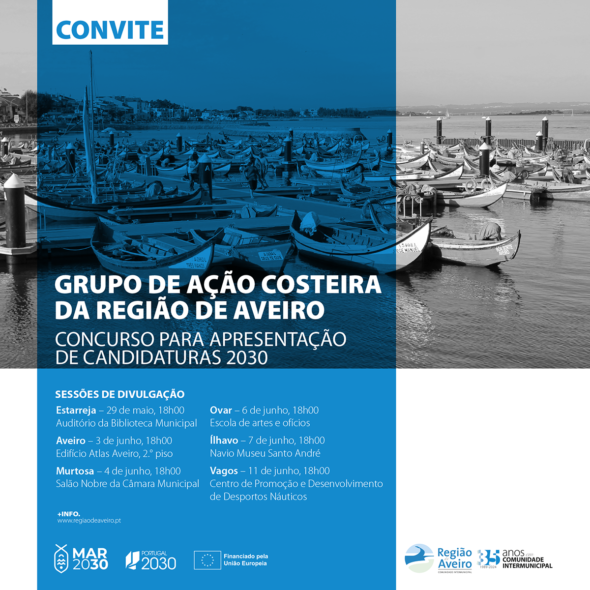 Esta iniciativa integra um ciclo de sessões de informação sobre os Avisos de Concurso e a Estratégia de Desenvolvimento Local do Grupo de Ação Costeira da região de Aveiro, nos seis municípios da área de intervenção do GAC-RA.